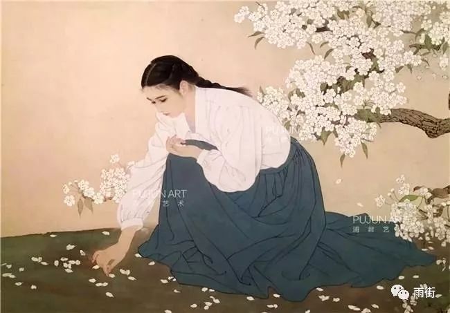 这些刻下时代烙印的画作,随着时间的流逝,越来越经典化。何家英敏锐地捕捉到了时代的精神,以艺术的方式完美地表现出来。而在艺术手法上,他也充满了创新精神。工笔画曾经盛极一时,晋、唐是工笔画的黄金时期,产生过顾恺之、阎立本、吴道子、张萱等一批工笔大师,画风或雄浑豪放,或丰盈饱满,或飘逸超脱,表现出画家非同寻常的才气、情调、涵养和艺术感受力。但后来越来越缺少生机活力,被认为是“院体”、“工匠画”,是模式化的代表。尤其一些仕女画,以摹写古人为主,僵硬刻板,导致程式化。何家英以写生打破这一僵局,写生必须随时随地变化,故能突破形式与传统限制,因而非常鲜活。同时,他又进一步探索,在工笔中引入写意,注入特有的文艺气息,因而呈现出一种意境和情怀。按他自己的说法,是工笔兼工“意”工“心”。 这或许与何家英的个人修养气质有关系。何家英曾承认自己有文人气,喜欢孤独,耽于冥想,所以喜欢揣摩人物细微心理及细腻表情动作,较之外貌,更看重人物内在气质。他重写生但不拘泥于写生,而喜欢在综合集中了然于胸之后抽取其意。同时,他追摩晋唐,一改很长时间工笔仕女画的纤弱萎靡,折射时代精神,显得开阔大气。可以说,正是这种写意,挽救了匠气过盛名声式微的工笔画,何家英为工笔画探索出了一条美之大道。何家英的作品,也因此具有越来越深远的学术意义,以及持久充沛的艺术生命力。 何家英画作欣赏 艺术以形象取胜。艺术殿堂里留下的都是那些经典的艺术形象。好的艺术家,也都是以塑造具有典范性的艺术形象而屹立于艺术世界的。工笔在艺术形象塑造方面有着独到优势。何家英创造的艺术形象,由于其理想化的审美情趣、纯粹唯美的抒情诗性气质和写意人物的独特艺术语言,可以说已经深入人心。那些散发着1980年代气息的迷人形象,已成为我们的一个时代背景。那些美丽的艺术形象,现在回过头来看,可以说是对一个过去了的美好时代的追忆。1980年代是一个精神和文化达到了相当高度的时代。时代远去,但艺术留存了下来,艺术形象留在了人们的心灵深处,成为人们寻觅历史记忆的痕迹,成为人们追怀的凭证和依据,也成为一个时代的标志和象征,因而成为永恒。