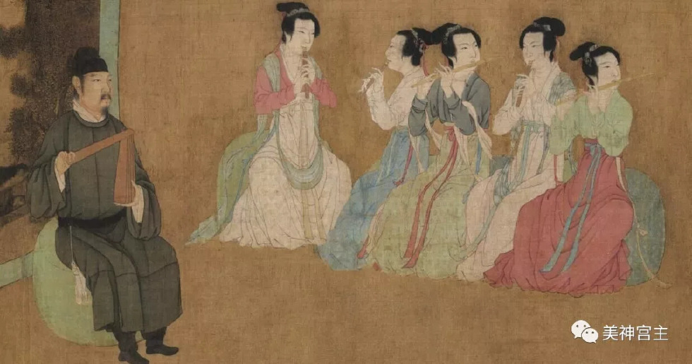 随行的楠方先生兴趣广泛、涉猎颇多,接着说道:“林先生说的琵琶是一种我国弹弦乐器的通称。唐代所谓的琵琶,专指三国魏晋以后经由西域传入的‘胡琵琶’;至于汉代流传下来的琵琶,此时称为‘阮’或‘阮咸’。胡琵琶有两种形制:一为曲项琵琶,简称‘琵琶’,4弦4柱,柱即‘相’,是音位的标志,音箱呈梨形,曲项,用拨子弹奏;一为5弦琵琶,简称‘五弦’,5弦4柱,形制与曲项琵琶相同但略小,原来也用拨子弹奏,在南北朝后期已有人改用手指弹奏了。唐代盛行的琵琶,主要是曲项琵琶,不仅用作大曲伴奏乐队里的领奏乐器,还经常用于独奏。唐代的器乐合奏,主要有鼓吹、管乐合奏及管弦乐合奏等。鼓吹最早产生于秦汉时期,唐代根据乐器组合的不同,分为铙鼓、箫笳、大横吹、小横吹4种;《韩熙载夜宴图》中描绘了一种管乐合奏的场面,5个家伎,3人吹筚篥,2人吹横笛;这幅画里的4个仕女是管弦乐合奏,其中笙和箫是汉族的传统乐器,琵琶、胡笳是少数民族乐器。