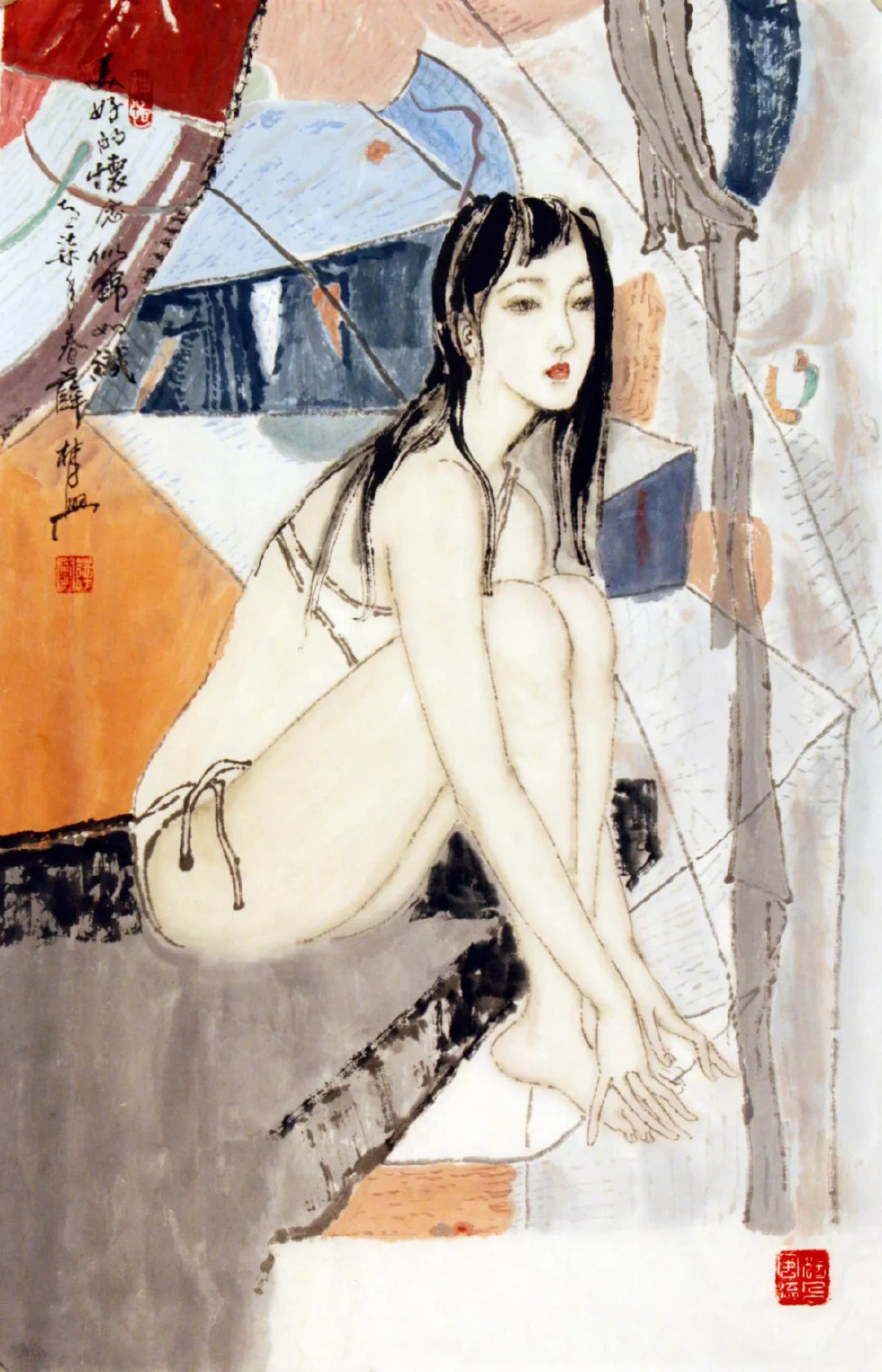 看着我惊奇的眼神,唐小姐大方地说:“我是一个绘画爱好者,平时喜欢读一些这方面的书籍。” “是吗?那我们今天请你是请对人了!”林广风趣地说:“薛先生可是中国新仕女画派的创始人,在国际画坛享有很高的声誉啊。” “那我今天是班门弄斧啰,还请薛先生和林先生多多指教!”唐小姐笑着说。 我谦虚地示意她继续讲下去。 “虽然画中绢底的很多地方已经出现破损,但并不影响画面的整体风貌。这张画似乎是一个宫中女眷的小聚,10位浓妆美女环坐一案,品茗饮酒,吹乐为兴,各具其态,有动有静,亦庄亦谐。正对着我们的4位自右而右分持胡笳、琶琶、古筝与笙,另有一人侍立一旁击打拍板,以为节奏;演奏的4人衣着与其他坐者并无太多差别,应该是自己人的自娱自乐。吹笙者旁边的执扇仕女,最为平静,面向乐者,倾心而听。其余数人则似乎更着意于杯中之物,左前方一位已不胜酒力,左手扶着几案,右手仍然送杯入口,一边的侍女急忙上前搀扶;右方中间一位已到酒酣处,举酒四望,支撑的左手尽显身体的酥软;还有一位仍在盛酒,面不改色。看着这幅画作,好似进入到一个飘扬着美妙迷醉的音乐、弥漫着酒香与脂粉味道的房间。”