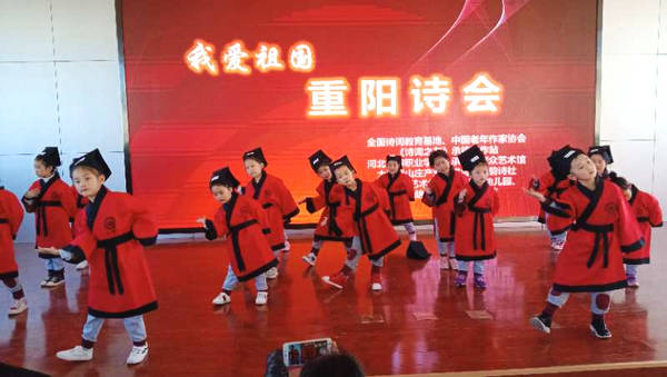 诗会开场节目是由小世界幼儿园带来的手语歌表演《感恩有你》,小朋友们充满童趣的表演,为诗会营造了一个愉快的氛围。河北旅游职业学院校园之声广播站的成员们声情并茂地朗诵了与会诗词界老前辈创作的《父爱如山,母爱是河》、《重阳节抒怀》、《中华崛起新篇》等十余首诗词作品,充分展现了诗歌的魅力,赢得了现场观众的阵阵掌声。