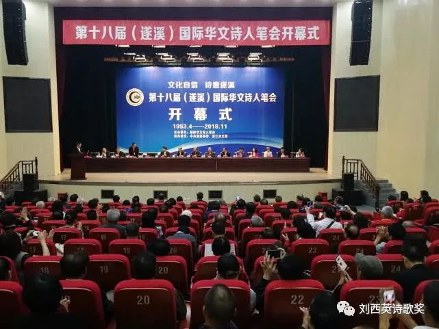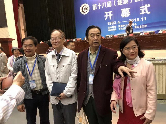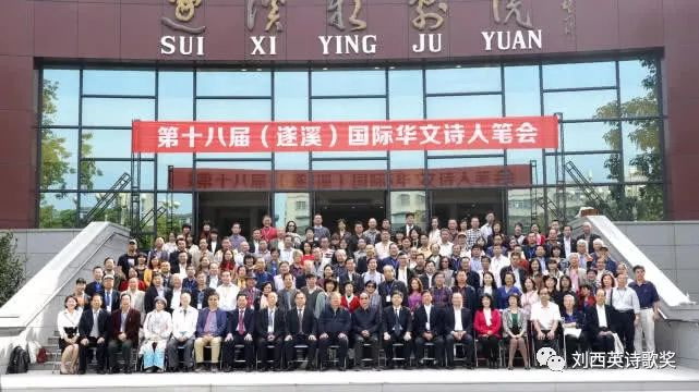 参加本届笔会的全体人员合影 人人文学网讯:以“文化自信 、诗意遂溪”为主题的第十八届(遂溪)国际华文诗人笔会于11月25日至28日在广东省遂溪县隆重举行。 中国作协副主席吉狄马加,原司法部副部长、将军诗人岳宣义,中国作协诗歌委员会主任、诗刊社原主编叶延滨,中共遂溪县委书记余庆创、县长陈政,国际华文诗人笔会主席张诗剑,执行副主席洪三泰,副主席蔡丽双、峭岩、薩仁图娅,以及来自美国、加拿大、澳大利亚、新西兰、西班牙、意大利、捷克、韩国、新加坡、马来西亚、泰国及中国内地和港澳台地区的著名诗人、诗评家周良沛、黄东成、晓雪、吕进、桂兴华、傅天虹、龚学明、康桥、安娟英、张月琴、张立中、王性初、陈织民、荒林、林雪、沙浪、招小波、蔡丽双、刘祖荣、路羽、陆萍、芳竹、等100多人出席了本届笔会。延安诗人刘西英应邀参加了本届笔会。 开幕式上,国际华文诗人笔会为著名诗人、诗评家岳宣义、吕进、庄伟杰颁发“中国当代诗人杰出贡献金奖”。活动期间,海内外华文诗人先后深入到遂溪孔子文化城、北部湾、黄学增故居、调丰古村落、龙湾醒狮团、湛江港等地采风,并在岭南师范学院举办了“百年新诗”论坛及诗歌朗诵活动。