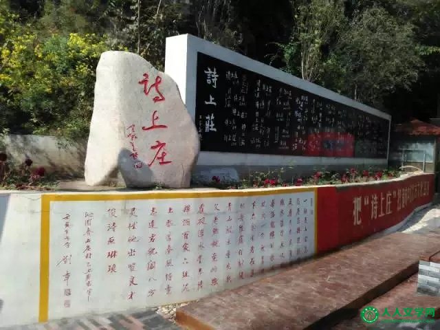 “诗歌本来就来自土地,来自乡村。这是从《诗经》就开始的文化传统。我们所做的是让诗回到乡村,让更多的人读诗懂诗爱诗,让传统文化的价值观在农民的心中生根、开花。”刘福君是这样说的,也是这样做的。这位19岁离开上庄当兵,也曾在生意场上摸爬滚打的诗人,其诗歌从未离开过这片生他养他的土地。他的诗歌里总是流淌着上庄的十里溪沟,闪现着他严厉的父亲、慈爱的母亲和质朴善良的乡亲。从他着手打造“诗上庄”,到现在已过去了五年,“诗上庄”正在变成一座真正的“诗的村庄”。一进村,诗的气息扑面而来。村里的小广场上,是数十块大理石碑刻,除了上庄诗人创作的诗歌,一百多首古今中外的名诗也镌刻其上。然后是一长排碑文墙,包括了上庄村的历史、村歌《我的上庄》、历届大中专学生名录、解放前入党的老党员和参军人员名单等。道路两旁的石头上、小河的河堤上,随处都刻着诗歌,让人仿佛走进了一片诗的天地。