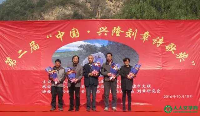 事实证明,他的“文化平台”搭建得非常有效。自从“诗上庄”这块牌子挂起来后,这个小山村真的被诗歌改变了。燕山采来的大石头,被拾掇干净,一溜一溜地立在路边,刻着一行行的诗。一块像打开的小学生作业本的石台上,刻满了一百多位诗人的名字。一张别具一格的“中国诗人地图”也挂在他的办公室中。他就像种庄稼似的“种诗歌”,让诗的花朵开满了村庄。连墙上刻的村里的乡规,也是这样的诗句:“……山与山斗雄奇,水与水比香甜,户与户赛文明,人与人争贡献……粗看都是废物,细观都是宝物,粗看都是俗人,细品都是雷锋……”在诗上庄,诗是头上的蓝天、山间的泉水、坡上的玉米地,不仅成了老百姓日子的一部分,而且还吸引了大批诗人和游人的关注。上庄诗歌馆,已经收集了数十位诗人的诗稿和题词。一本村级诗刊《诗上庄》,也时常刊发名家的新作。村歌《我的上庄》已在村民中唱响:“小河清清淌,鸟儿把歌唱,春来山花笑,金秋果飘香。”2014年和2016年,“中国·兴隆刘章诗歌奖”已举办了两届。2015年,首届“诗上庄国际诗歌论坛”在上庄村举办,海内外诗人齐聚一堂,小山村成了诗的海洋。在今年秋季,“诗上庄”还将举办“第二届诗上庄国际诗歌论坛”,届时将有十多个国家的诗人来到上庄,又是一场诗歌的盛会!