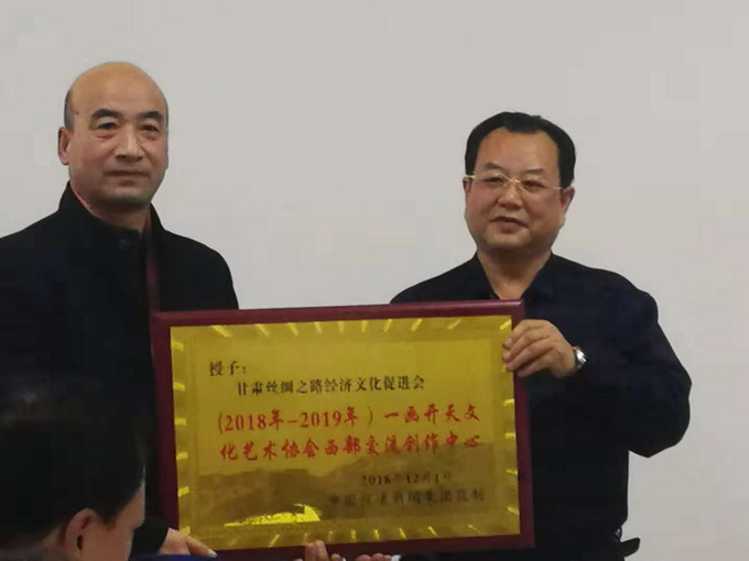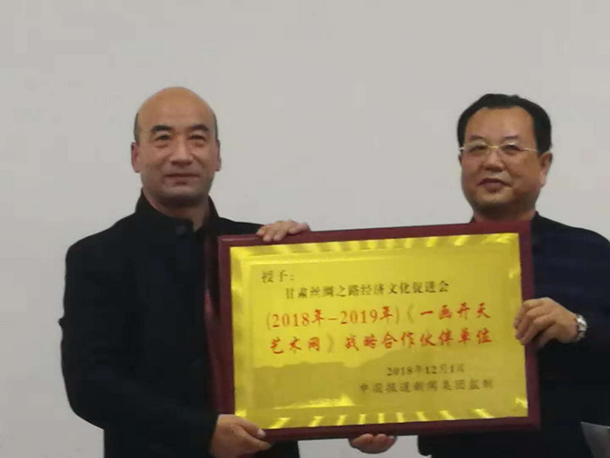 人人书画网讯:同舟共济扬帆起,协作共赢万里航。12月7日上午,甘肃丝绸之路经济文化促进会与一画开天文化艺术协会(北京)就双方结成战略合作伙伴关系举行了揭牌仪式。