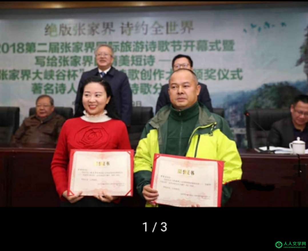 诗人刘雅阁荣获张家界国际诗歌节 诗歌创作大赛二等奖 写给张家界的精美短诗——张家界大峡谷杯”全民诗歌创作大赛,历时1个月,共收到参赛作品12280多首,参赛作者12000多人, 经大赛评委会综合评审,产生一等奖1名,二等奖2名,三等奖3名,优秀作品奖50名。 诗人刘雅阁创作的《张家界玻璃栈道》荣获诗歌创作大赛二等奖。《诗刊》副主编李少君给刘雅阁颁奖。 ![]() (刘雅阁荣获诗歌大赛二等奖) ![]() (刘雅阁获奖作品《张家界玻璃栈道》)