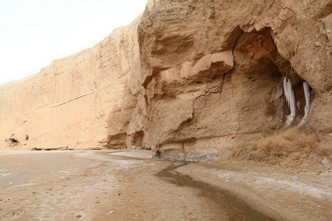 一路前行,两边的石柱象树林一样插满山头,这是大自然的杰作。在光线的折射下显得异常神秘,无论你从那一个方向仿佛都能看到一幅壮美的图画,形像而又生动。在这条峡谷里,你能听到潺潺的流水声,你能看到泉眼下的水结成的冰柱,景色壮美。就是有了这些淅淅沥沥的泉水,野骆驼才能在这里生存,这些泉水是野骆驼生命的源泉,也养育着这片土地上的生灵。