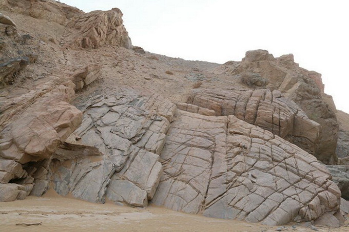 在这条峡谷里,有数块大石小石垒成的石阶,你仿佛感到已经就是这个沟壑的尽头,但是,从这里踏上二级石台价,再上一个台阶,虽然非常难行,但是你踏上了这个台阶,这就是罗布泊的“自然博物馆”。