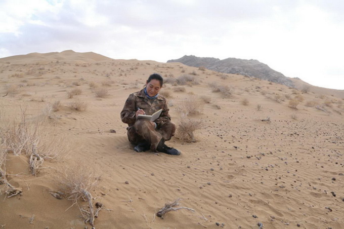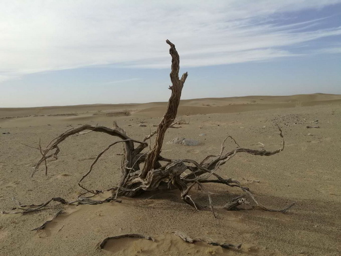 隆冬的季节一路颠簸,车在起伏的沙丘上穿行,每时每刻都有意想不到的危险。从一个沙丘冲到另一个沙丘,有的下坡就有七、八十度,这种惊心动魄简直是让人心灵撞击般的震撼……