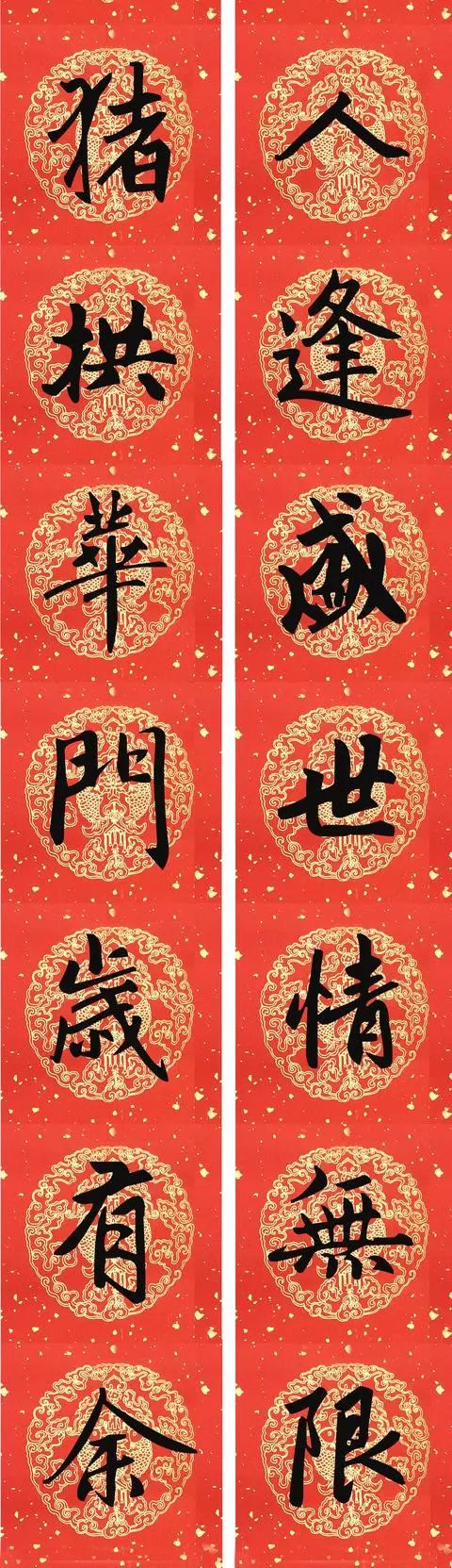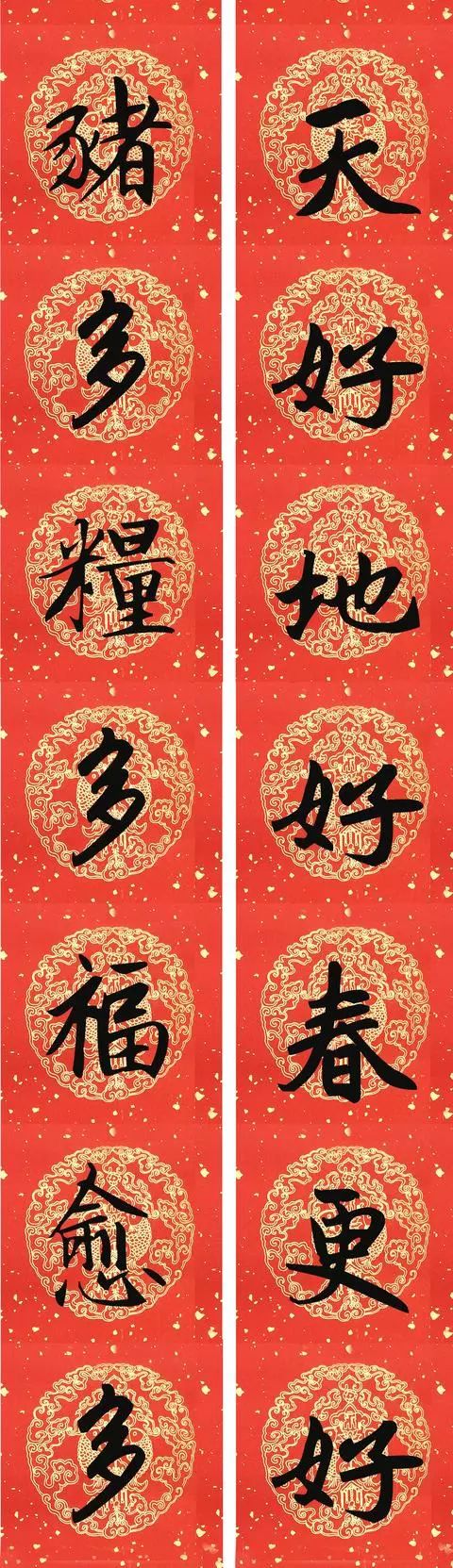 上联是 :收福接福纳福福从天降 下联是 :送福添福祝福福满全家