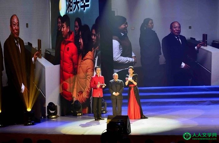 齐振田、颜华、盛继东三位富有诗歌情怀的爱心之士,荣获本届华语诗歌春晚组委会授予的“2019年华语诗歌春晚爱心形象大使”荣誉称号,华语诗歌春晚法律顾问、中国政法大学研究生办公室主任肖宝兴,北京师范大学文学院办公室主任马然,华语诗歌春晚组委会秘书长、江西吉安市驻京办主任胡志敏作为颁奖嘉宾为他们颁发了奖项。 ![]()