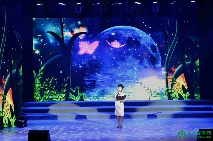 朗诵表演结束后,是隆重的“首届湘天华杯全球华语诗歌大赛”的颁奖环节,主持人首先对首届湘天华杯全球华语诗歌大赛组委会名誉主任、著名经济学家、诗人汪良忠进行了现场采访,汪良忠先生充满诗歌文化情怀的发言让现场很多观众深受感染。接着,吴思敬、马庆泉、汪良忠、杨四平、王霆章、度母洛妃、张月宇、朱文辉、冰峰、周占林等著名评论家、诗人与艺术家分别为“首届湘天华杯全球华语诗歌大赛”的金奖获得者海男,银奖获得者大枪、萧萧(新西兰),铜奖获得者安琪、灵鹫、王性初(美国)以及优秀奖获得者的代表盛华厚、杨映红颁奖。颁奖环节结束后,央视主持人黄薇朗诵了金奖获得者、著名诗人海男获奖组诗中的一个诗节《蝴蝶的寓言》。