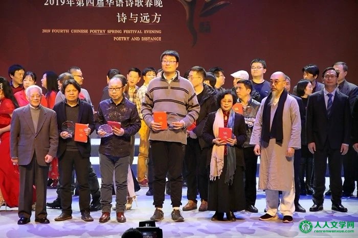 刘以林、刘雅阁、娜斯佳(俄罗斯)则荣获本届华语诗歌春晚组委会授予的“2019年华语诗歌春晚公益推广大使”荣誉称号,北京大学教授、著名诗歌翻译家赵振江为他们颁发了奖项。 ![]()