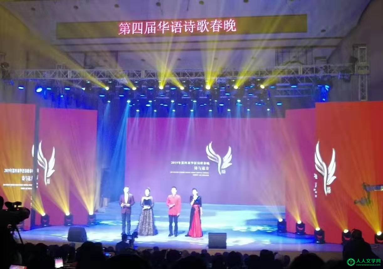 2019年2月19日晚,第四届华语诗歌春晚在北京隆重举行,来自全国及海内外的百余位知名诗人、评论家、艺术家与社会各界代表1000余名到场观看。