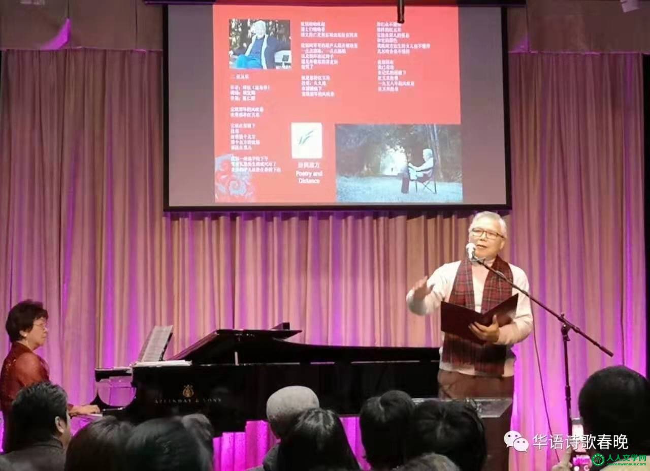 诗人朗诵自己的作品,自古以来是诗歌艺术活动中的传统,也是观众所期待的。诗人自己的朗诵少了表演,却还原了诗人创作的那一刻情境,让观众直接感受诗人的原创情绪。原本准备到场朗诵自己诗作《红玉米》的诗人痖弦,因健康原因未能如愿,成为这场在温哥华本地举办的诗歌春晚的一大缺憾。好在他在此前录制的预祝华语诗歌春晚圆满成功的视频,多少弥补了本地诗友和观众的渴望。而“诗与钢琴”的统筹策划、导演宇秀本身也是一位诗人,作为海外新移民诗群的重要代表,她的诗歌创作受到洛夫和痖弦两位前辈诗人的关爱和扶植,去年出版的两部诗集均由两位诗坛大家联袂推荐,并被中国诗歌评论界称为“海外华语诗人创作的重要收获,堪称近年海外新移民诗人群标志性的现代诗创作成果。”(谭五昌)“而且为世界华文女性文学的诗歌创作提供了新的多种审美的可能性,是21世纪以来世界华文女性诗歌写作的重要成果。”(首都师范大学教授、中国世界华文文学学会女性文学委员会主任王红旗《〈我不能握住风〉:心灵疼痛与济世理想的追问》,原载2019年1月29日《中国妇女报》)。这次朗诵会上由她自己朗诵的《无声年关》即选自诗集《我不能握住风》。