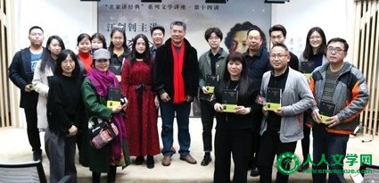 北京外国语大学外国文学研究所教授汪剑钊与来自北京大学、北京师范大学、首都师范大学、中央民族大学、中央美院等高校的学生,以及鲁迅文学院的青年作家等各界文学爱好者合影留念。(北京出版集团供图)