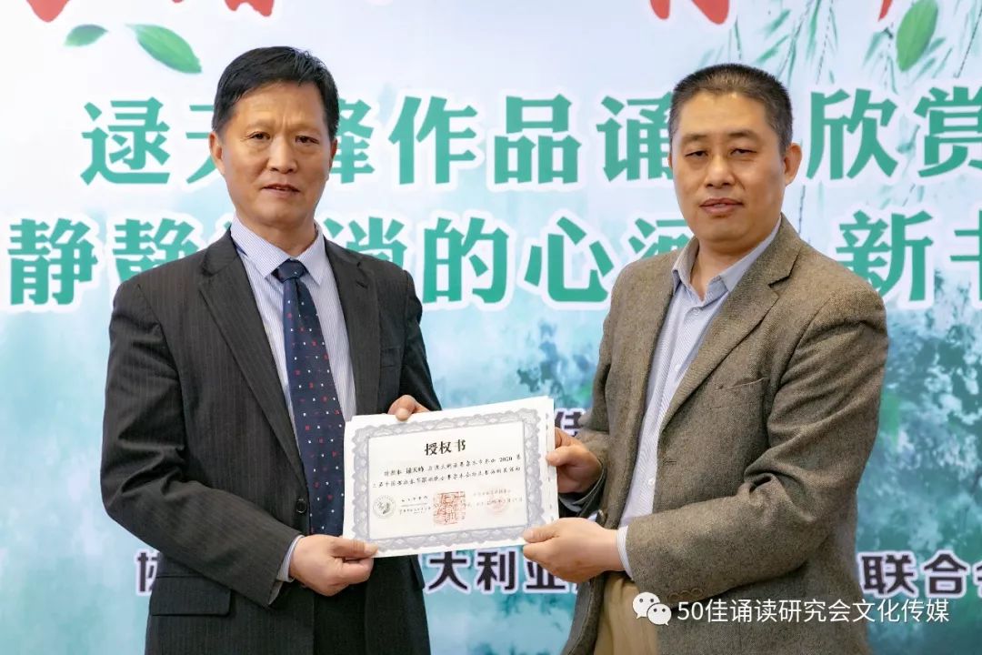 【中国书画春晚总策划王博生先生为逯天峰先生颁发授权书】