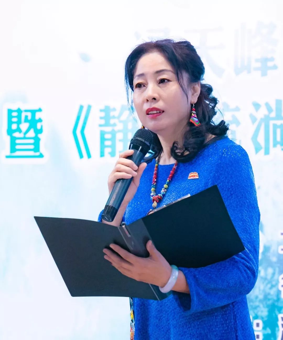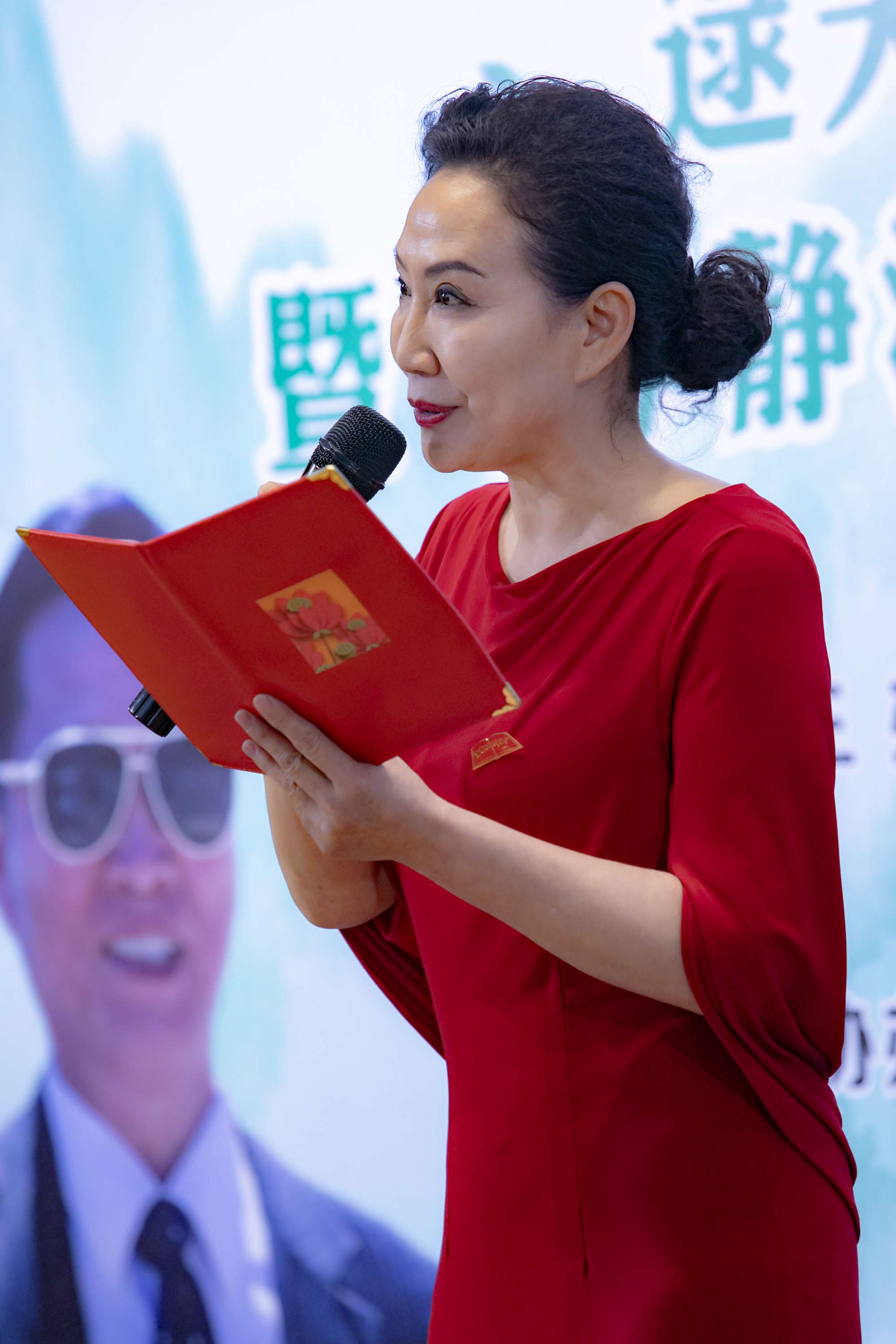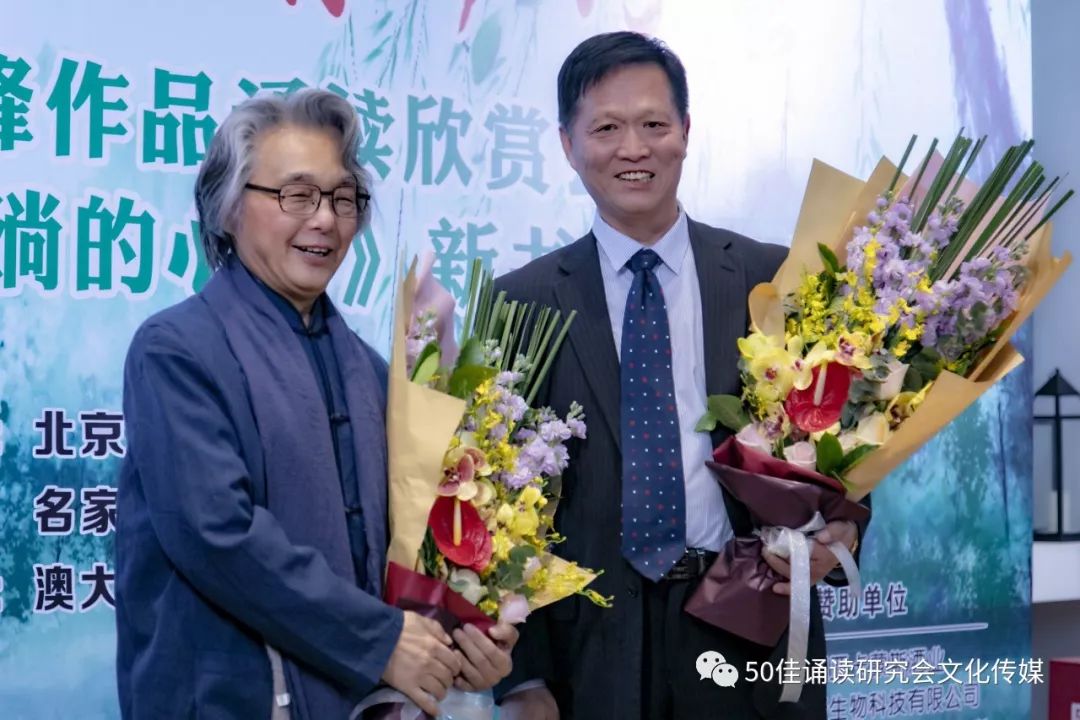 【逯天峰先生与朗诵艺术家张文星先生共同接受观众的献花】