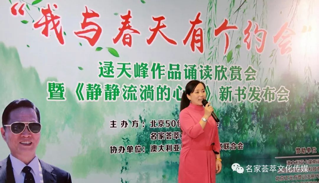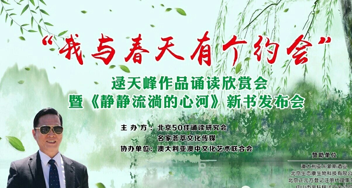 人人文学网讯:2019年,3月29日,由北京50佳诵读研究会、中国名家荟萃文化传媒主办,澳大利亚中澳文化艺术联合会协办的“我与春天有个约会”逯天峰作品朗诵会暨《静静流淌的心河》新书发布会在中国北京举行。