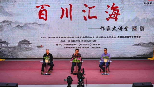 “百川汇海•作家大讲堂”由北京海淀区委宣传部、海淀区文联、海淀区文化委、海淀侨联主办,海淀区作协、海淀区文化馆、中国作家网承办,《中华英才》杂志社、《十月少年文学》杂志社、国人书院协办;由北京大学中文系主任陈晓明、首都师范大学教授张志忠、海淀区作协主席石钟山担任文学顾问;由中央电视台新闻主播崔志刚担任艺术顾问。讲座由杜东彦主持。在京多名作家以及鲁迅文学院部分学员、中关村海归文学社团、海淀小作家协会、海淀高校文学社团联盟和社会文学爱好者300余人现场聆听。