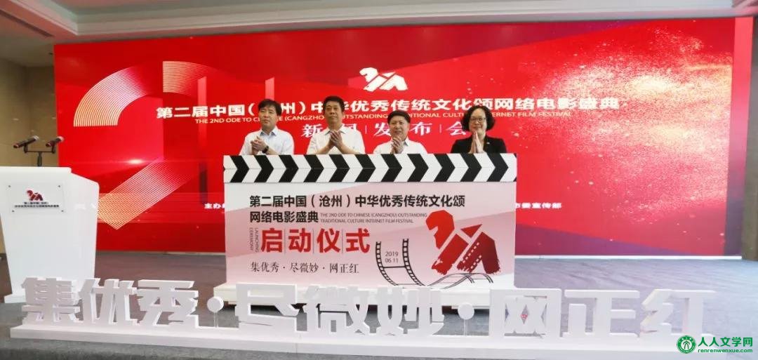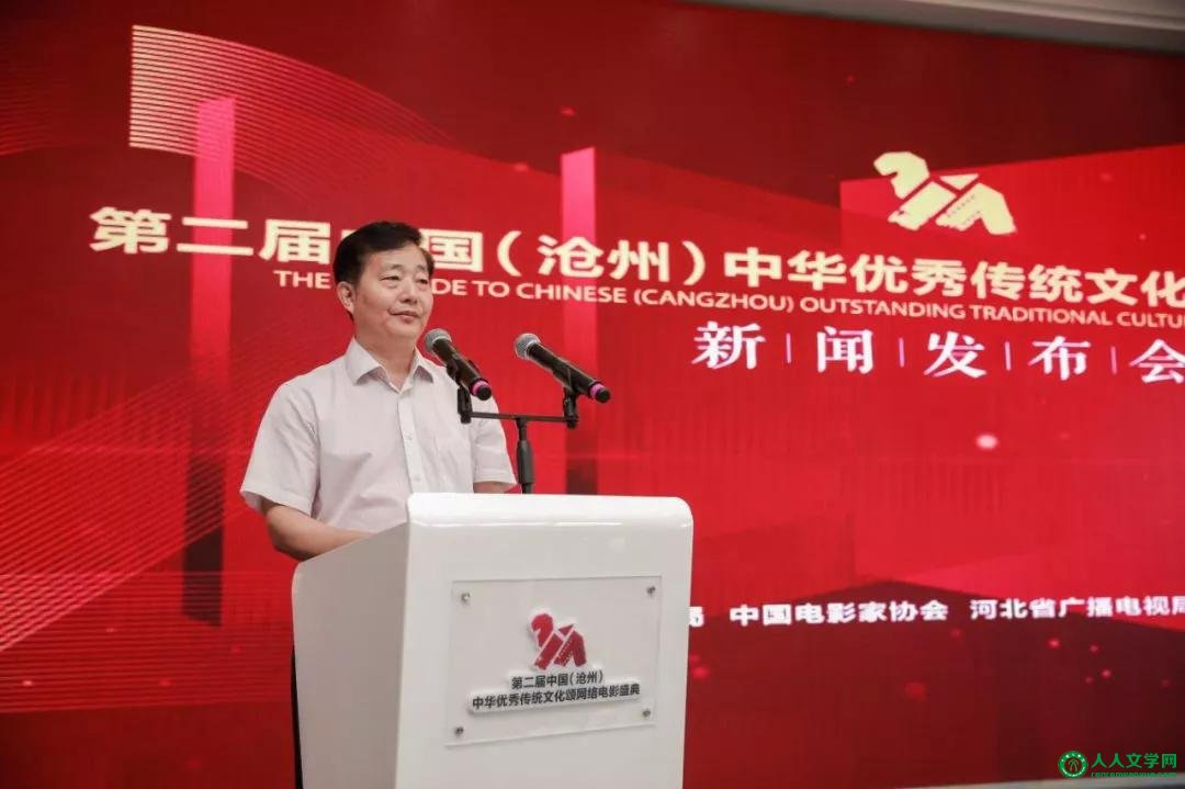 2019年6月11日上午,由河北省电影局、中国电影家协会、河北省广播电视局、中共沧州市委宣传部共同主办的“第二届中国(沧州)中华优秀传统文化颂网络电影盛典”新闻发布会暨启动仪式在沧州市国际会议中心举行。中共沧州市委常委、宣传部部长贾发林,中国电影家协会分党组成员、中国文联电影艺术中心主任饶曙光,河北省广播电视局副局长李丽,河北省委宣传部电影处调研员崔玉刚,爱奇艺电影中心商务经理王亚星等主办单位领导及20多家新闻媒体记者出席了发布会。