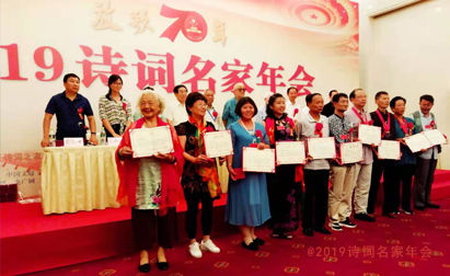 本次活动由《诗词之友》编辑部、中国楹联学会诗词文化研究院等单位主办,与会嘉宾杨金亭、常江、郑伯农、晨崧、莫真宝、韩倚云、冯楚、赵安民、吕居荣、张脉峰等,以及来自全国各地的诗词名家代表朱文秀、周立举、王兴凡、任建堂、蔡国芳、刘淼华、曹大文、吴冲西、杨向武、王火、黄永清、唐建昆、余忠信、程绍宏、冯道武、李大合、赵建华、王兆淦、王春香、吴玉琴、朱殿臣、孙希新、谭可源、刘祥林、李新民、孙宗宝、邓均予、焦兴华、马德政、章景曙、过继正、周文富、高淑平、徐景荣、张关卣、陈军、陶振扬、郭兴昆、张世明、曹庆义、谢谨、黄春泰、陈燕周、陈泽辉、李莉、张越军、彭金柏、李质彬、黄光东、梁梅、袁杰章、张沛家、王丙午、王振武、褚云香、陆锦泰、夏国忠、雷峰、李增、蒋爱国、任庚远、李彩卿、卫兆元、刘兆凤、颜张月华、周德明、吴寿成等及部代表家属百余人参加,《诗词之友》编辑部同仁董毓慧主持开幕式,孙娜、曹浩、王博生等,全程鼎力协助。 放歌七十年,共圆中国梦。活动期间,举办了“第二届‘国粹杯’中华诗词楹联大赛颁奖典礼”、“2020(第四届)中国诗词春节联欢晚会启动仪式”和节目彩排、“放歌七十年——诗词高峰论坛”、“第六届‘中国梦’精品诗词图书刊物展”等丰富多彩的诗意活动,并组织与会代表集体采风,参观游览了国家博物馆、天安门广场、北海公园等国家标志性建筑和首都名胜,对新中国七十周年的巨大变化感慨万千,大家用诗词、书画等艺术形式,写下对祖国母亲的美好祝福。(国粹网/梦龙)