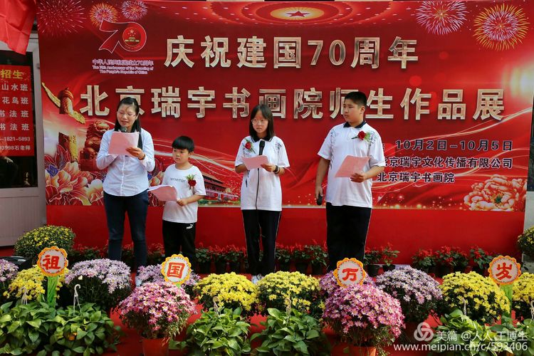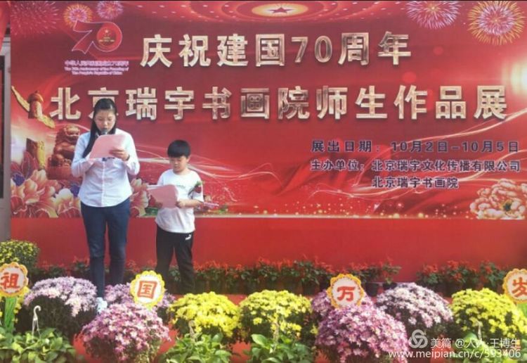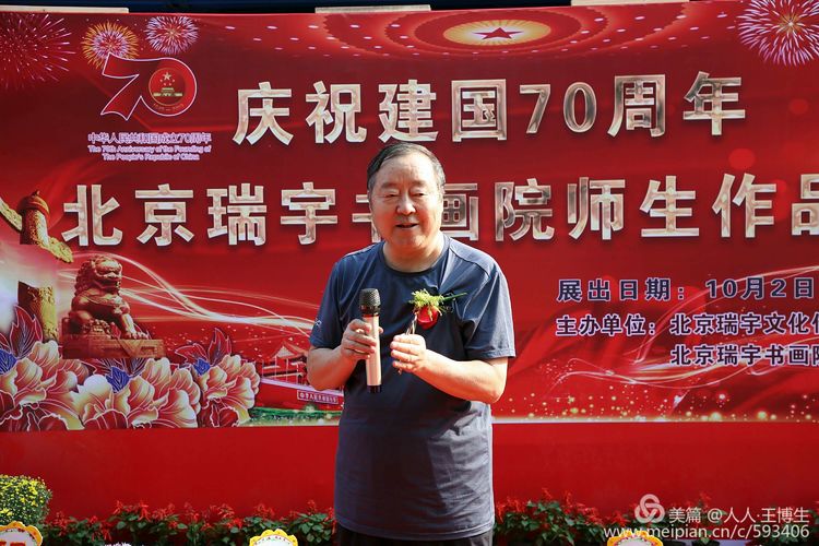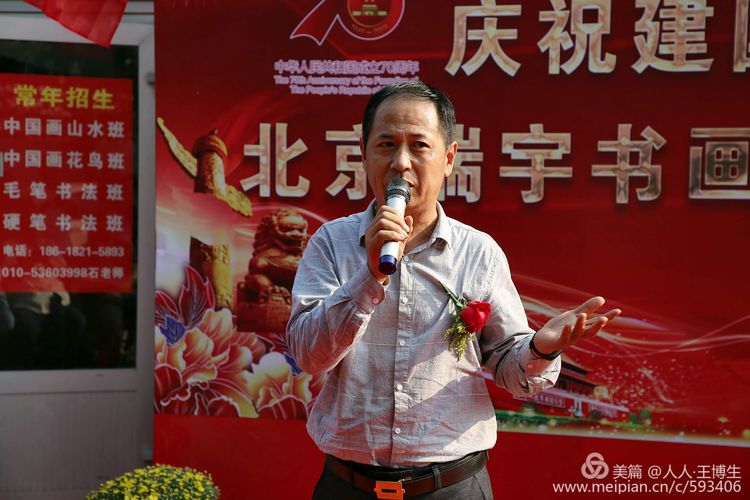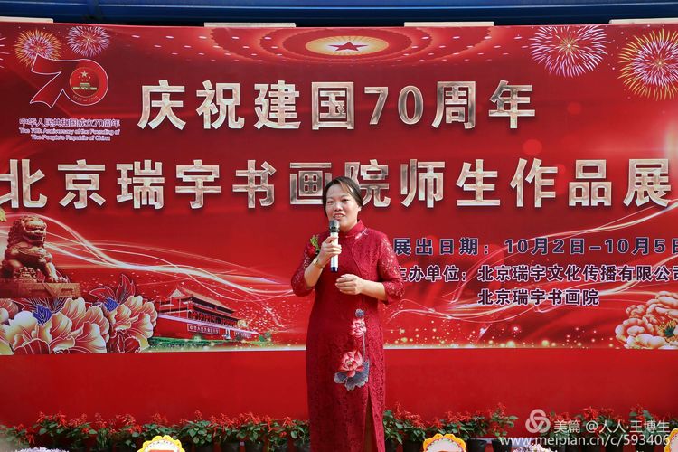 人人艺术网讯:2019年10月2日下午,庆祝建国70周年北京瑞宇书画院师生作品展在北京通州开幕。活动由北京瑞宇书画院主办。参加开募式的嘉宾有原文化部老干部局长,中央国家机关美术家协会常务副主席陈培伦先生。中国散文家协会会员贾广全先生,河南美协会员、安阳美协副主席靳军先生,中国书画春节联欢晚会策划王博生先生。 本次活动策划人石玉霞女士,北京瑞宇书画院院长徐连臣先生出席开幕式。 参展艺术家有:徐连臣,韩凤祥,画家石玉霞及瑞宇书画院《末来之星》的学员等。参展作品内容丰富,题材多样,许多作有很高的欣赏价值与收藏价值。本次书画展为新中国70华诞献礼,增添了地区书画艺术交流,展示了书画院近年来的创作成果。 北京瑞宇文化传播有限公司(瑞宇书画院)始创于2015年。主要经营艺术教育培训,艺术家字画销售与推广,艺术创作创新,艺术市场开发,艺术品销售,字画名家推广,在线平台信息推广为服务内容。公司下设:“北京瑞宇书画院”,“北京瑞宇书画拍卖网”在线平台。 北京瑞宇书画院,分设有朝阳区分院、通州区分院。自成立以来,画院充分利用自身的地理优势,与各高等艺术院校、书画艺术团体合作,吸纳了一批艺术教育专家学者,不断开拓教育创新,为各大院校输送了一大批艺术人材。为各中小学生提供了优越的基础培训环境,为终老年书画爱好者创造了良好的书画学习与交流平台。 本次书画展主要展出了部分老师与学员的作品,得到了嘉宾们的高度称赞,给每位学员极大的鼓励,希望他们在今后的学习中不断提高自己的知识与创作水平。到场嘉宾还接受了人人艺术网人人访谈的专访。采访中嘉宾对瑞宇书画院寄予厚望,希望在今后发展中不断壮大,为社会培养更多优秀书画人才。 附: 北京瑞宇文化拍卖网在线提名艺术家平台。 平台主要具有如下几方面的特点: (一)参展提名艺术家的艺术水平的第 一标准,展览作品精益求精,代表其创作性。 (二)展览与市场紧密结合,藏家可在线观展的同时选购心仪的作品。 (三)提名艺术家兼顾老中青三个年龄段,有较强的代表性。 (四)展览作品存档立案,为作品防伪和流传提供依据。 (五)预展期间举办相关学术活动,请权威专家学者议评艺术价值和市场价值。 参加开募式的嘉宾有陈培伦先生、韩凤祥先生、贾广全先生、靳军先生,以及本次活动策划人石玉霞女士,北京瑞宇书画院院长徐连臣先生。 嘉宾陈培伦先生致开幕词陈培伦,中国美术家协会会员、中央国家机关美术家协会常务副主席、文化部美术考级评审委员会委员、中国书画收藏家协会顾问、中国人民大学继续教育学院山水课题班导师、《经济》杂志社书画艺术委员会主任。 北京瑞宇书画院副院长、书法家韩凤祥讲话 韩凤祥,字鸣岑,1953年生,原籍山东临清人。自幼酷爱书法,翰耕几十年,师法柳宗元、傅山、黄庭坚、米芾,旁及赵孟頫、董其昌、二王、怀素、张旭诸家。书法苍劲磅礴、婉转流畅、气韵贯通、风格清新、形式多样,传统功力深厚,且自家风貌突出。 现为山东省艺术研究院研究员、齐鲁书画研究院分院副主任、中国当今农民书画艺委会理事、中国书法艺术研究会会员、北京卿云诗书画社社员、中国公共关系艺委会会员、中国书画家联谊会理事、中华名人书画协会会员、北京书画艺术院特邀研究员、中国水墨艺术研究院艺术委员。 北京瑞宇书画院理事、画家、本次活动策划人石玉霞女士讲话 石玉霞,1972年1月生于山东。现定居北京。自幼喜欢绘画,毕业于北京服装学院设计专业。2013年进修中央美术学院,深入钻研绘画至今,其作品被海外内知名人士及收藏家收藏。现为北京海淀区油画家协会会员,北京油画学会会员、国家一级美术师。 北京瑞宇书画院院长徐连臣讲话 徐连臣,字殿卿,号晨阳,槃石,西亭,桃花园主,松柏门人,清阳道人。1964年生于山东临清。张宝珠先生入室弟子,进修于中国国家画院课程班。受教于范揚,文化部陈培伦老师,现为中国艺术扶贫专业委员会副主席,中国艺术扶贫画院执行院长,中国书画家协会常务理事,中央国家机关美术家协会会员,国家一级美术师,中国国礼书画家,北京鹅池苑书画院常务副院长,京东书画院副院长,齐鲁书画研究院研究员,泰山国画院副秘书长,聊城美协理事,临清市美协副主席,临清中国画研究院副院长,东方书画院副院长等。