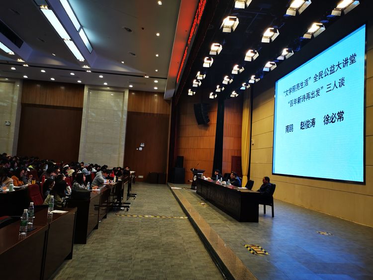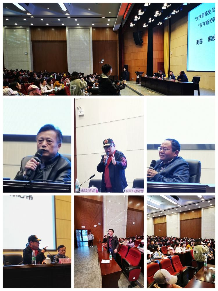 诗人们还专门留出了时间给到场的师生们进行现场问答互动,与广大诗歌爱好者进行了细致的交流,气氛融洽而热烈,对青年学子的诗歌创作极富启迪。 本次公益学术讲座始终在热烈的气氛中进行,贵州师范大学学术报告厅500人的会场座无虚席。
