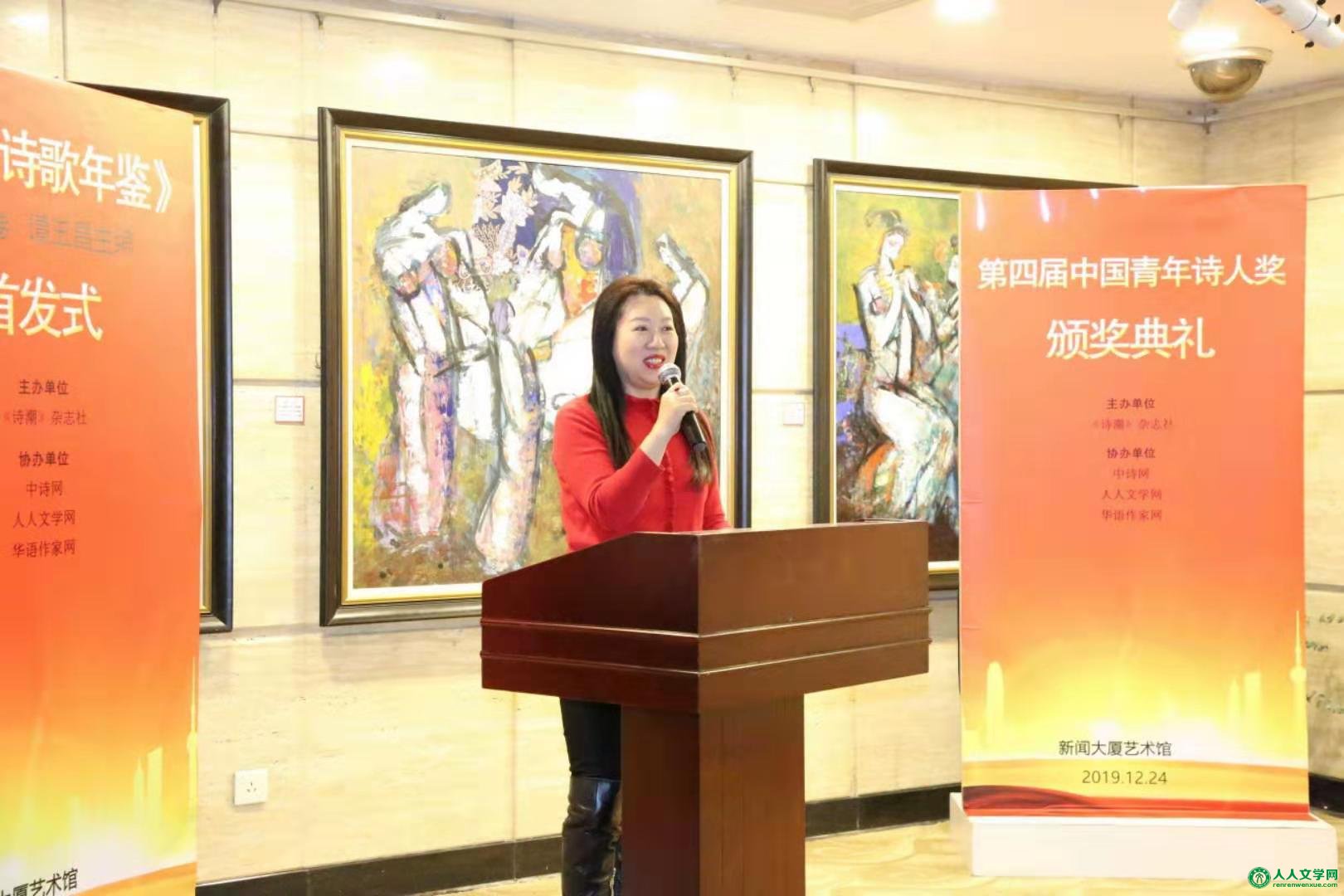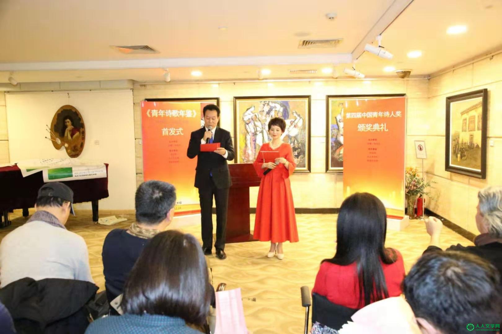 《青年诗歌年鉴》首发 式 暨第 四 届 中国青年诗人奖颁奖典礼 在京成功举行 2019年12月24日 下午三时,由《诗潮》杂志社、人民日报出版社主办。 李军、柏荷在主持诗歌活动 由中诗网、人人文学网、华语作家网协办的《青年诗歌年鉴(2018年卷)》【谭五昌主编