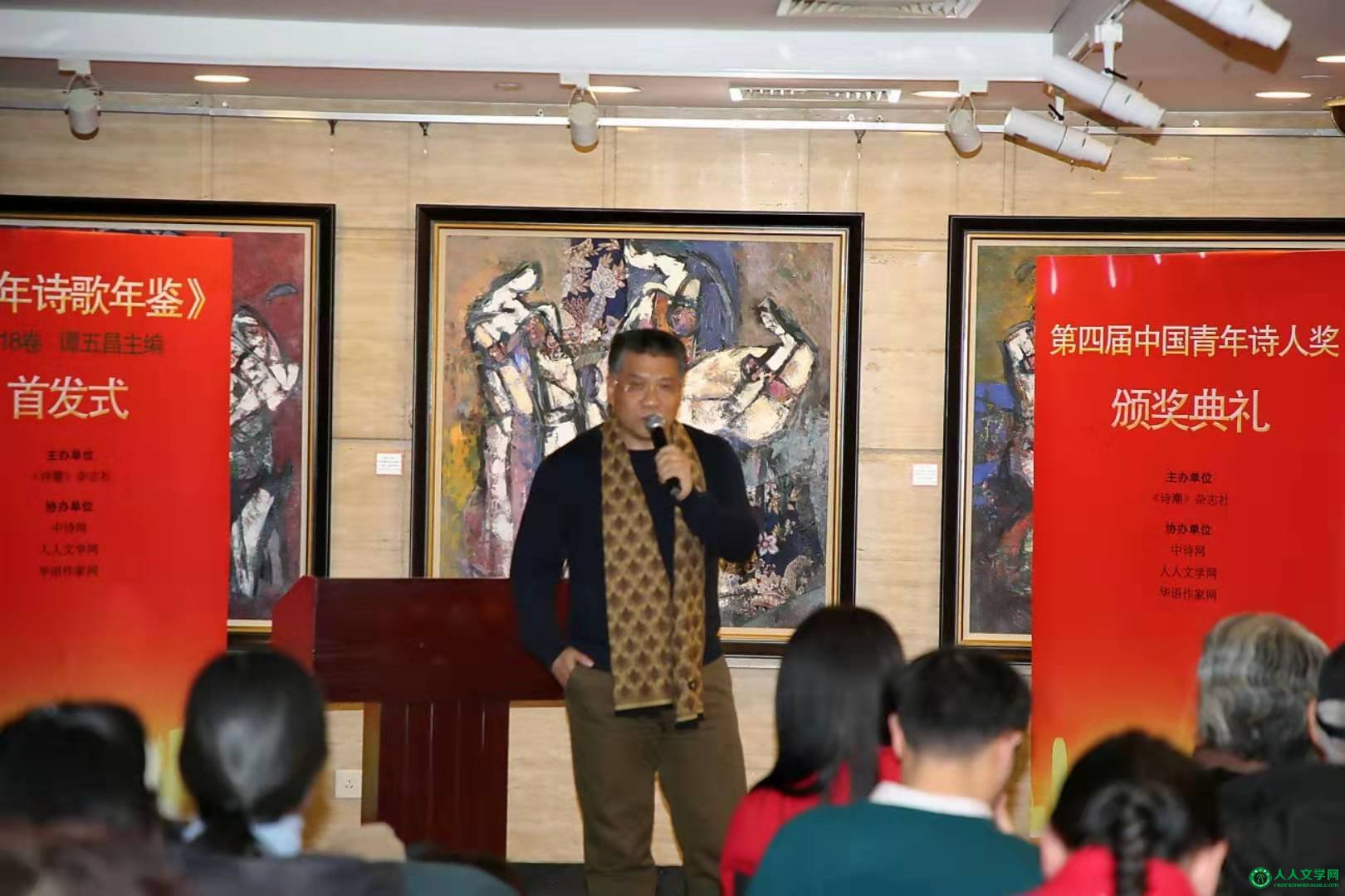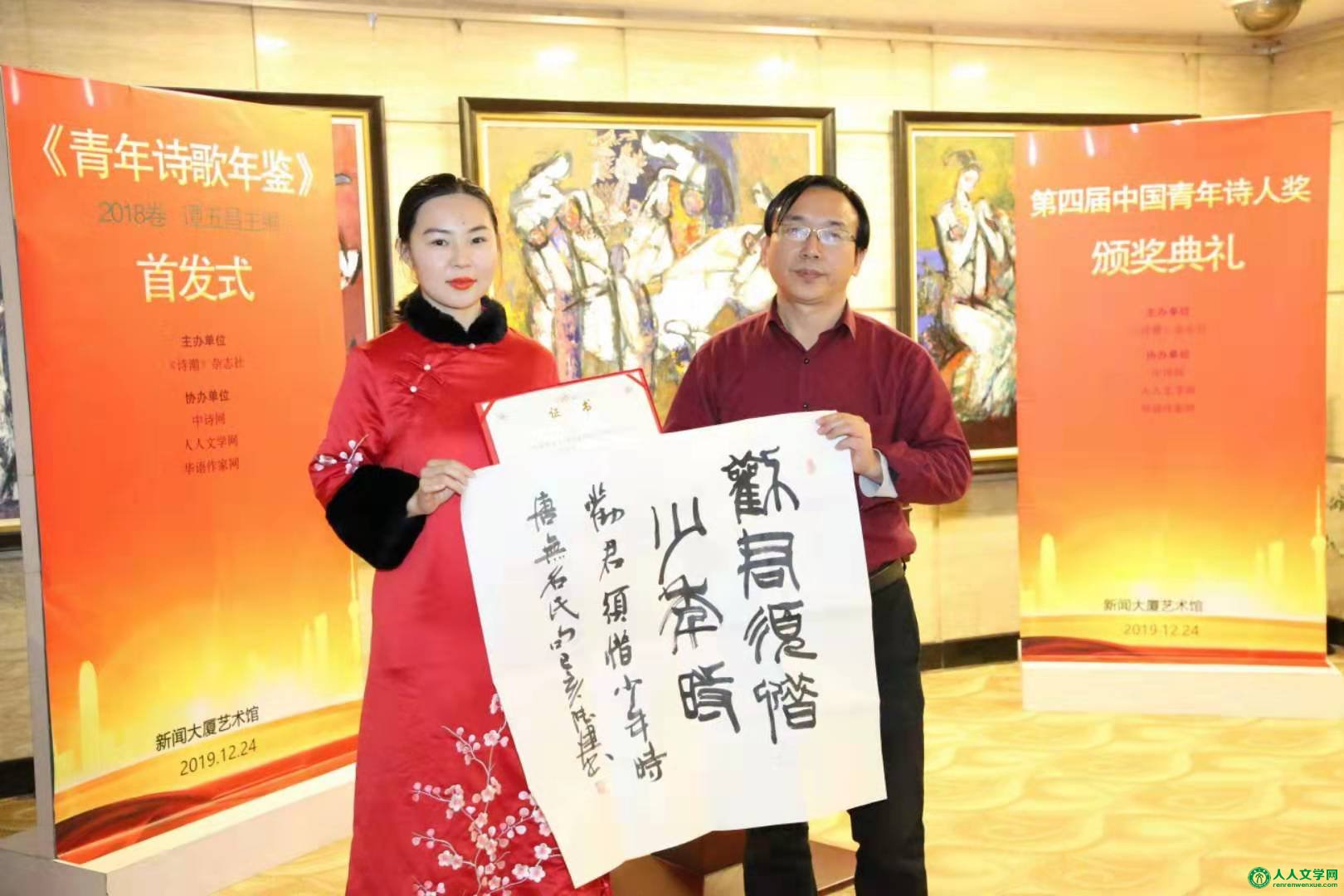 由中诗网、人人文学网、华语作家网协办的《青年诗歌年鉴(2018年卷)》【谭五昌主编,人民日报出版社出版】首发式暨第四届中国青年诗人奖颁奖典礼在北京新闻大厦艺术馆隆重举行。