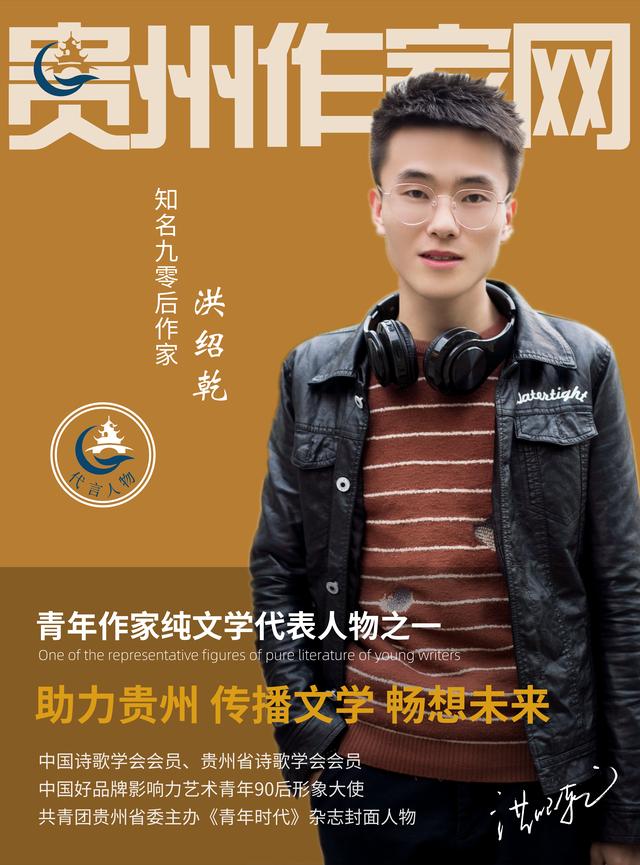 洪绍乾 笔名:笔若,知名90后作家、诗人。中国诗歌学会会员、贵州省诗歌学会会员,贵州诗人协会会员、贵州省诗歌学会网站编辑部副主任、《贵州作家报》报社执行副主编,2008年开始创作,先后出版书籍《脚趾上的下弦月》《女人和果实》等多部作品,书籍曾被北京清华大学图书馆收藏。他发行过音乐专辑《诗人与歌》被上海人民广播电台播出、贵州省90后作家排行榜首榜人物、中国90后作家排行榜人物之一,曾获得“中国90后金笔作家奖”、“人人文学奖”,2020年荣登共青团贵州省委主办的《青年时代》杂志封面人物等。