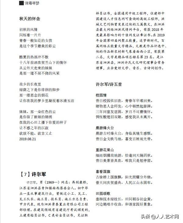 2020中国网络草根诗人诗集《诗海寻梦》出版,由团结出版社出版,全网发售。并将在《微诗刊》公众号、人人论坛诗歌专栏连载,欢迎关注。本书荣获2020年度人人文学网最佳图书奖。