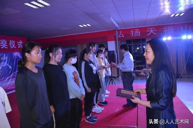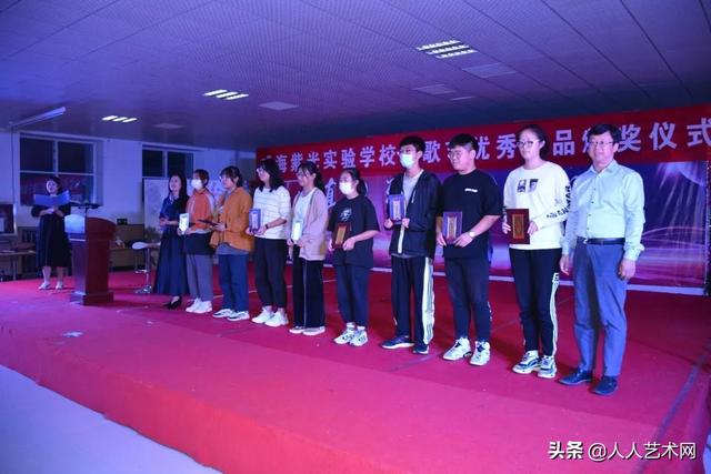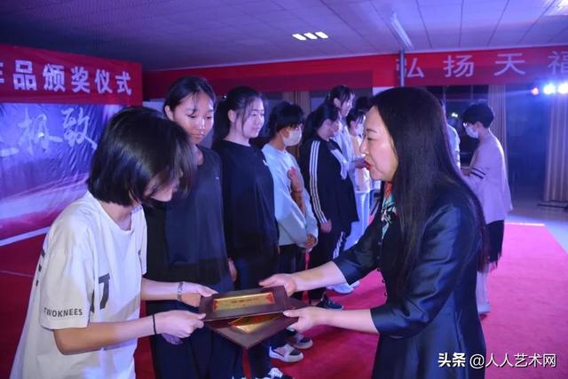 ▲著名诗人潇潇与李凌己校长为获奖学生颁奖