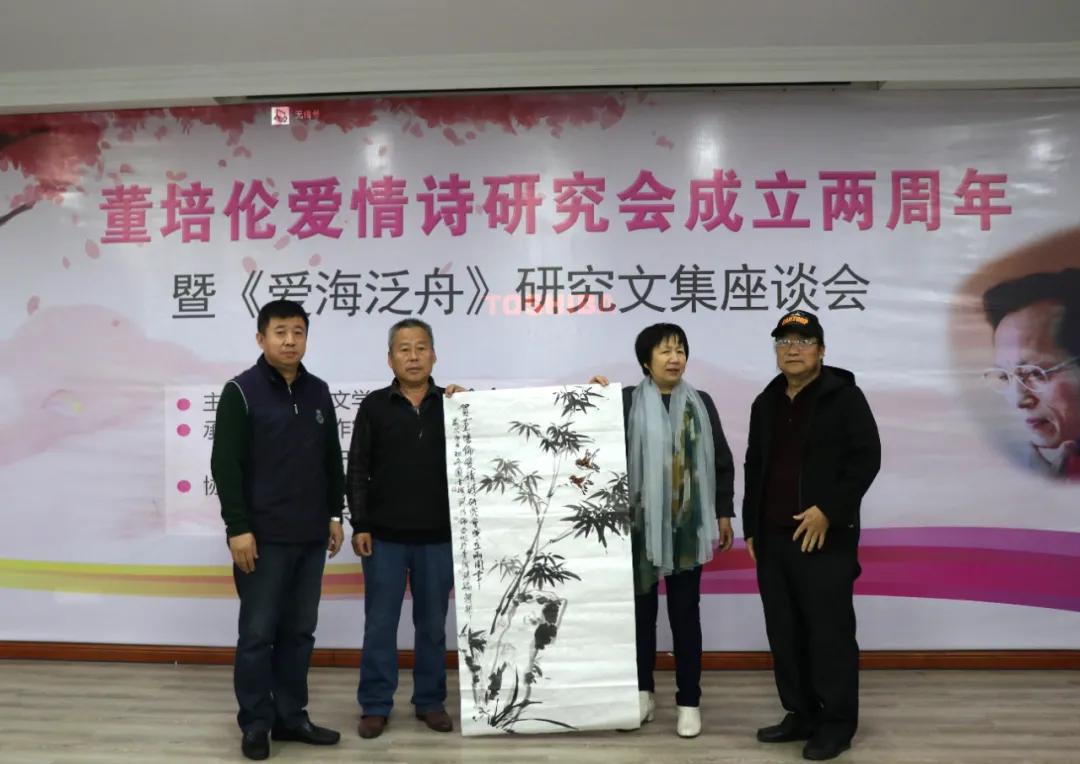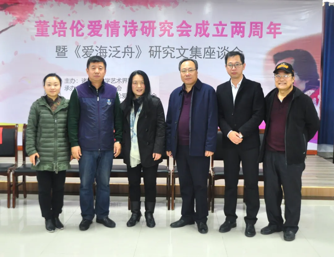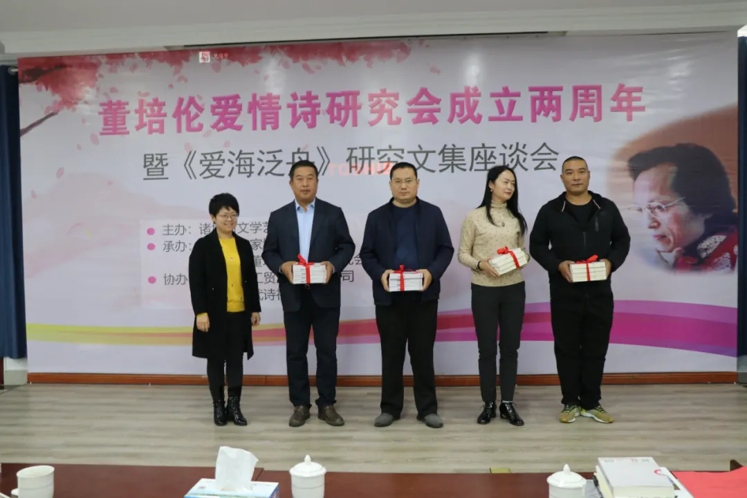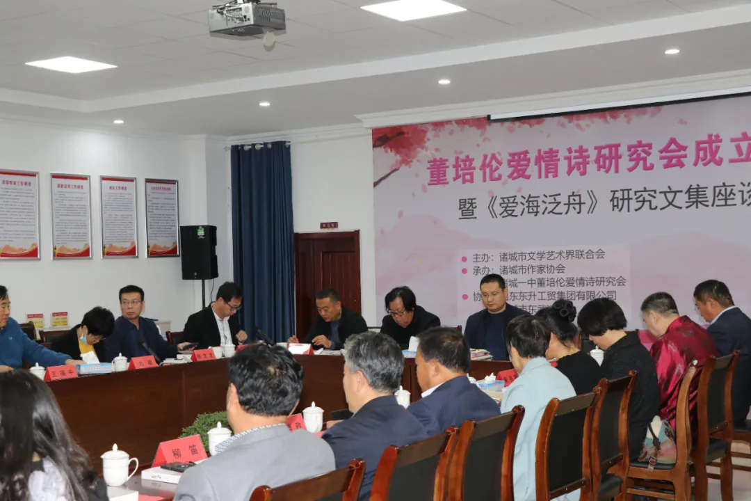 人人文学网讯:11月8日上午,东升集团二楼会议室内,诗意盎然,暖意融融。由诸城市文联主办、诸城市作协与诸城一中董培伦爱情诗研究会联合承办的“董培伦爱情诗研究会成立两周年暨《爱海泛舟》研究文集座谈会”在这里隆重举行。