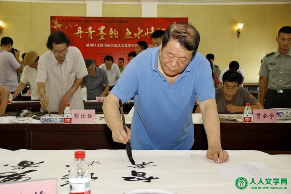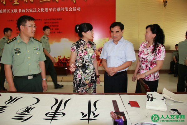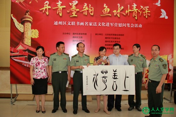 通州区文联助力争创新一轮“全国双拥模范城 ”、创建全国文明城区 人人文学网讯:(摄影 王博生)围绕创建全国文明城区,争创新一轮全国双拥模范城,建设北京行政副中心,8月6日上午,由通州区委宣传部、区文联、区武装部、区财政局、区文明办、区民政局、区双拥办等单位联合主办,北京陆军预备役高炮师、通州区书法家协会、通州区美术家协会梨园镇党委、政府、玉桥街道工委、玉桥街道办事处等单位联合承办的"丹青墨韵 鱼水情深"通州区文联书画名家送文化进军营慰问笔会活动在北京陆军预备役高炮师举办。区文联组织20余位书画名家为部队官兵精心创作,以此表达拥军爱民、拥政爱民,军民鱼水一家亲的深情厚谊。 活动中,区委常委、统战部部长洪波同志致辞,对此次活动的举办表示祝贺。一直以来,北京预备役高炮师在完成军事任务的同时,积极支持通州各项事业建设,发挥了不可替代的作用,通州区政府一如继往的支持部队建设,进一步深入做好双拥工作。在三个多小时的活动中,书画艺术家们挥毫泼墨创作百余幅作品,感谢部队战士们为维护国家安全、社会稳定,确保人民安居乐业所发挥的重要作用。好的艺术作品能够激励斗志、壮大军威,深厚的文化素养也是优秀军人必备的素养。此次活动,也是以文化为媒介,进一步加强军地关系,加强军民情谊,建立起艺术家与战士之间的联系,相互影响,共同发展。在活动最后由领导和艺术家一起将书画作品赠送给部队官兵。 此次活动旨在深入贯彻习近平总书记系列重要讲话精神,着眼于加强军民团结、推进军民融合深度发展,把服务经济建设、政治建设、文化建设、社会建设、生态文明建设与服务国防和军队建设结合起来。发挥文联作为党和政府联系文学艺术界的桥梁纽带作用,组织艺术家们以实际行动深入军营,服务人民,体现了军民一家鱼水情深的和谐氛围。为争创新一轮全国双拥模范城,创建全国文明城区贡献力量。 通州区人大主任李玉君、区政协主席赵玉影、北京陆军预备役高炮师张洪波师长、北京陆军预备役高炮师孙复兴政委、区委常委武装部长芦峰、区委常委统战部长洪波、区武装部政委张国富、区文联主席樊淑玲、区财政局局长张春良、文明办主任张卫东等领导参加了此次活动。 |