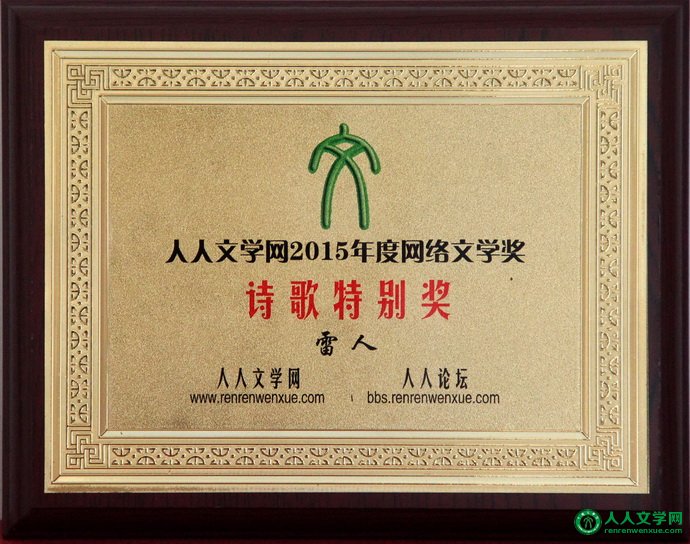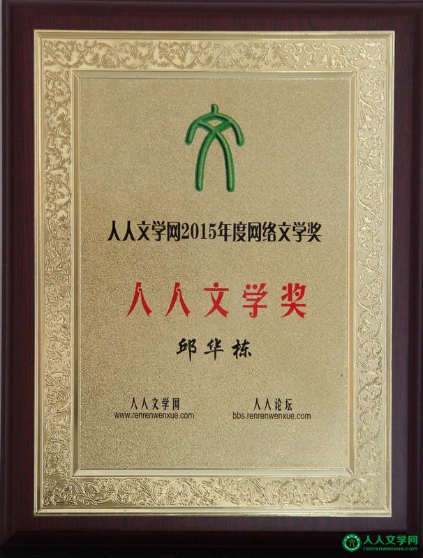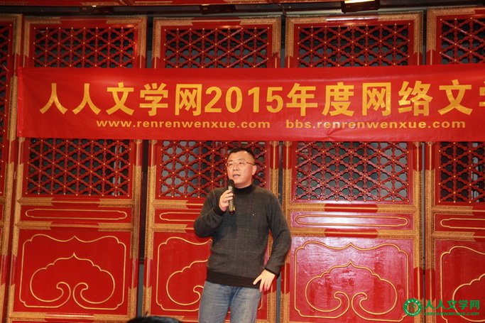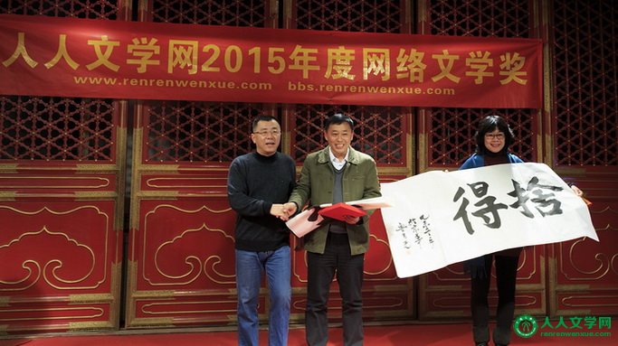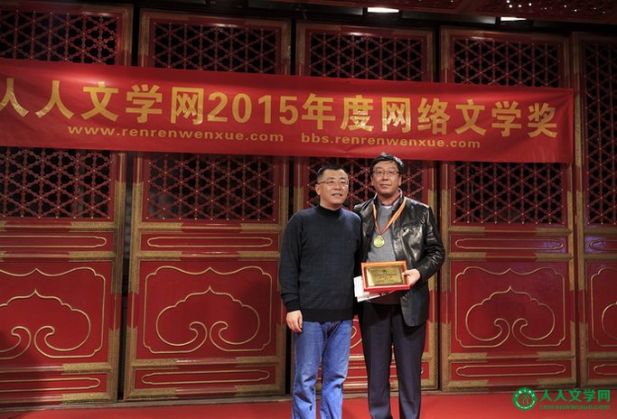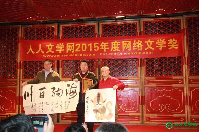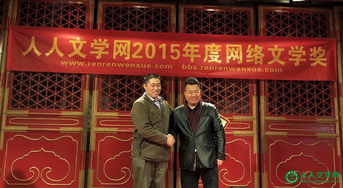 由人人文学网主办的2015年度网络文学奖颁奖典礼于2016年1月1日上午10点10分,在北京前门老舍茶馆拉开帷幕。来自全国各地的获奖人员、颁奖嘉宾、特邀嘉宾及社会各界人士近百人出席了一年一度的盛大颁奖典礼。