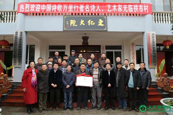 ![]() 人人文学网讯:2016年1月10日,中国诗歌万里行走进四川遂宁市蓬溪县常乐镇拱市村,举行了创作基地揭牌仪式。蓬溪县委宣传部长邓正强、拱市村第一书记蒋乙嘉、中国作家协会诗歌委员会主任叶延滨、中国诗歌万里行秘书长祁人共同为“中国·拱市村创作基地”揭牌。 拱市村在四川当地很有名气,先后获得了生态文明村、市级文明村、省级环境优美示范村等荣誉。拱市村第一书记蒋乙嘉是一个典型人物,当过兵、下过海,将自己创业收入的一千多万元全数捐给村里,用于修路建房等建设。8年来,蒋乙嘉带领村民走上了一条致富之路,从一个人均纯收入低于2000元的贫困村,变成了远近著名的富裕村,人均纯收入过万元。 万里行采风团由著名诗人、中国作家协会诗歌委员会主任、中国诗歌万里行组委会常务副主任叶延滨、秘书长祁人以及诗人李犁、洪烛、周占林、赵智(冰峰)、杨志学、北塔、李自国、王博生、梁建国、刘燕、唐诗、杨俊富等组成,诗人们对于一个脱贫致富的乡村,通过采风活动,用诗歌记实大美遂宁、诗画蓬溪斑斓乡村的嬗变历程,为强国梦留下诗篇。 出生于自贡荣县的诗人祁人是这次活动的组织者之一,他告诉记者,这是首次将全国性诗歌创作基地落户村一级组织。在祁人的设计中,依靠创作基地这一平台,除了经常性的采风活动之外,还将邀请国内较有影响力的诗人常驻拱市村,用诗歌的形式,记录四川西部一个小山村的小康之路。 诗人洪烛在接受记者采访时说,眼前的拱市村是新农村建设的升级版,不仅有漂亮的住房、通畅的道路和农业产业支撑等硬实力,还有诗歌、书画、群众文娱等文化软实力的体现。他在即兴而成的一首小诗中写道:“我看见那么多鲜花,都是笑脸,我看见那么多笑脸,都是鲜花……” 作家网总编、中国微小说与微电影创作联盟常务副主席冰峰(赵智)在接受记者采访时说,随着经济的快速发展和社会形态的巨大变革,农村人为了改变生存境遇,几乎都去城市打工去了。村庄的凋敝、衰败,甚至消亡已经成为常态。在拱市村,我们看到了勃勃生机和欣欣向荣的景象,看到了中国农村的未来和希望。作为作家,我们有责任拿起我们的笔将这里发生的一切宣传出去,让拱市村成为中国农村发展的模板、典型、典范。 让土地充满希望,让鲜花开满村庄。这是拱市村见得最多的标语。拱市村“第一书记”蒋乙嘉接受采访时说,经过返乡8年多时间的奋斗,原本落后闭塞的拱市村变成了现在远近闻名的“小康村”,他的目标是——“要让乡亲们过上城里人羡慕的生活。” ![]() 授牌仪式后合影留念 ![]() 蓬溪县委宣传部长邓正强、拱市村第一书记蒋乙嘉、中国作家协会诗歌委员会主任叶延滨、中国诗歌万里行秘书长祁人共同为“中国·拱市村创作基地”揭牌。 ![]() 拱市村“第一书记”蒋乙嘉向采风作家介绍情况 ![]() 祁人向诗人刘燕颁发“中国·拱市村创作基地”主任聘书。 ![]() 拱市村“第一书记”蒋乙嘉向叶延滨颁发荣誉村民证书 ![]() 拱市村“第一书记”蒋乙嘉向祁人颁发荣誉村民证书 ![]() 拱市村“第一书记”蒋乙嘉向赵智(冰峰)颁发荣誉村民证书 ![]() 拱市村“第一书记”蒋乙嘉向洪烛颁发荣誉村民证书 ![]() 拱市村“第一书记”蒋乙嘉向周占林颁发荣誉村民证书 ![]() 拱市村“第一书记”蒋乙嘉向李犁颁发荣誉村民证书 ![]() 拱市村“第一书记”蒋乙嘉向王博生颁发荣誉村民证书 ![]() 冰峰(赵智)、李志国、洪烛合影留念 |