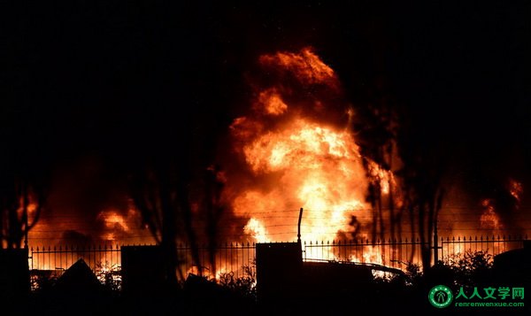 8月12日晚11:20左右,天津港国际物流中心区域内瑞海公司所属危险品仓库发生爆炸。根据中国国家地震台网的记录,灭火过程中共发生两次爆炸,间隔约30秒。第二次震级更高,相当于21吨TNT。现场曾有蘑菇云升起。 目前在事故现场依然有浓烟升起,在刚刚,有15辆消防车开进天津港,这些消防车上都写了“泡沫车”。危化品如果发生火灾,不能用水来浇灭,只能用泡沫。另外,现在在天津港口还有三辆消防泡沫车正在等待进入。同时在另一条车道上还有8辆载重车,载重车上装的都是沙土。危化品发生火灾时,常用的一个方法就是用沙土里掩盖。
