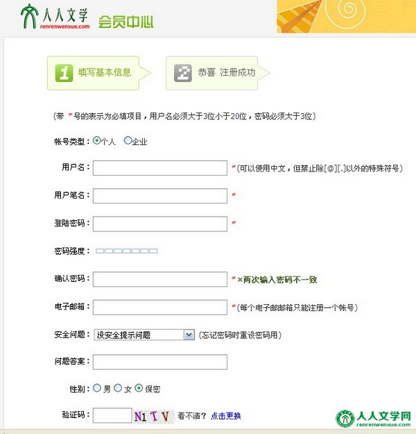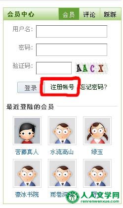 第一步:在人人文学网http://www.renrenwenxue.com 首页右上角点“注册帐号”