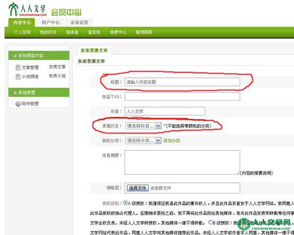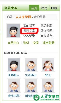 人人文学网注册会员发表文章只需5步(图示顺序)