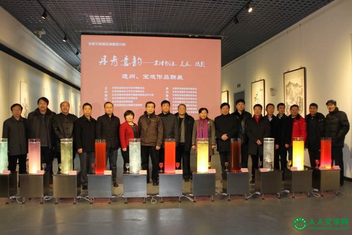 人人文学网讯(摄影 高群):围绕京津冀协同发展,为宣传美丽北京、美丽通州,宣传通州区创建全国文明城区,建设北京行政副中心,感悟天津之美、宝坻之美,1月21日,京津两地80余位艺术家代表齐聚通州区台湖国画院,共同参加“丹青意韵——京津书法、美术、摄影通州、宝坻作品联展”。本次联展是由北京市通州区文联、通州区文明办、区文化委、区财政局和台湖镇党委政府与天津市宝坻区文联等单位联合举办的迎新春展览,共展出通州、宝坻两地美术、书法、摄影作品210幅,收藏作品40幅,展期5天。