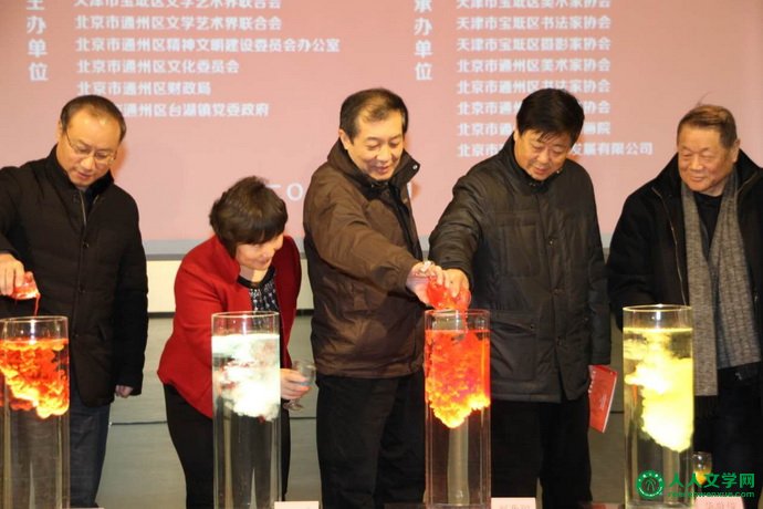 北京市文联党组副书记刘开阳,通州区人大常委会常务副主任罗明光,天津市宝坻区委、常委宣传部长刘亚秀,天津市书协副主席任长文,天津市美协副主席孟庆占,天津市宝坻区文联主席孙伯,北京市通州区文联主席樊淑玲,北京市通州区精神文明建设委员会办公室主任张卫东,通州区台湖镇党委书记倪德才等相关领导和艺术家参加本次活动。