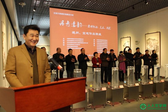 开幕式上,天津市宝坻区委常委、宣传部长刘亚秀首先致辞,向光临开幕式的各位领导和各位嘉宾表示热烈的欢迎,向对关心和支持此次联展的各界朋友表示感谢。随后,通州区艺术家代表,中国书法教育研究会副会长,清华大学客座教授华敬俊先生上台发言,介绍了参与此次活动的初衷及创作感想。北京市文联党组副书记刘开阳宣布展览开幕。