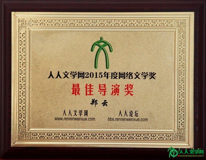 ![]() ![]() 最佳导演奖——郑云【颁奖辞】【获奖感言】 【代表作】 微电影:《零落岸边芦荻花》 【颁奖辞】 中国微电影之父、中国手机电影第一人、中国微电影领军人、新媒体先锋人物、中国微电影协会常务副会长、自编自导自演拍摄了400多部手机微电影……一系列荣誉称号的人物就是中国著名微导——郑云。 郑云,出生在一个书香世家,父亲是个书法家,母亲曾在当地演出剧团担任歌唱演员。从小的耳濡目染赋予了郑云对艺术创作有着特别敏锐的触觉,有过主持人、经纪人、演员经历的他对演绎剧中各种人物非常到位。从2006年接触微电影,2008年组建郑云工作室,至今已拍摄包括《我不是药家鑫》《老婆我想静静》《圣诞节奇遇记》《医院里的诺贝尔奖》等七百多部微电影,郑云微电影作品每天有超过两千万人次浏览量,全球浏览量已过百亿人次,目前海内外已有千万“云粉丝”,被网友和媒体誉为“中国微电影之父”。 人人文学网2015年度网络文学奖最佳导演奖颁发给这互联网时代的微电影英雄——郑云先生。 @ 郑云——获奖感言: 感谢人人文学给我颁这个奖,感谢这个伟大的时代,有了互联网,让我们可以分享彼此的思想和很多有趣的事情,我们成长于网络,创作思路和素材很多也是从网上获取,朋友们也更多是在网上看到我们的作品,我想我们以后不管是创作大电影、网络剧、还是微电影电视剧都会以互联网思维进行创作,因为这已深深植根于我们的思想,这个奖项是属于郑云工作室这个有爱大家庭的,我们将持续我们的激情创作,为丰富广大劳动人民的精神文化生活,为大家带来更多的正能量做出我们的贡献,再一次感谢人人文学! 【人物简介】 郑云,男,湖北荆州人,主持人、演员 、导演。 现任中国微电影协会常务副会长,第三届北京国际电影节微电影大赛主审评委,英国伦敦创意文化节全球华语微电影大赛评委会副主席,担任过多次各地微电影大赛评委及颁奖嘉宾。2008年创立北京郑云文化传媒工作室。