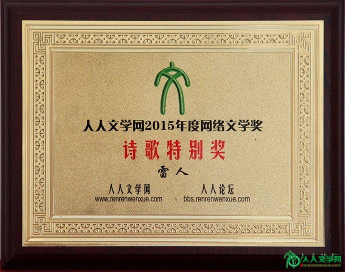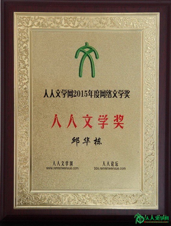 由人人文学网主办的2015年度网络文学奖颁奖典礼于2016年1月1日上午10点10分,在北京前门老舍茶馆拉开帷幕。来自全国各地的获奖人员、颁奖嘉宾、特邀嘉宾及社会各界人士近百人出席了一年一度的盛大颁奖典礼。
