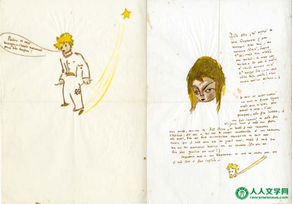 一个40多岁的大叔,为了一个足足比他年轻了20岁的女人而倾其所有。他给她写信、给她打电话——她要是不接电话,就嘟嘟囔囔地发牢骚,还一遍遍地恳求她爱自己、只爱自己一个人。真是丢人啊!但在那些信上,却画着小王子的素描草图。所以,这个写情书的大叔,就是那个大家都喜欢的圣埃克苏佩里呀。