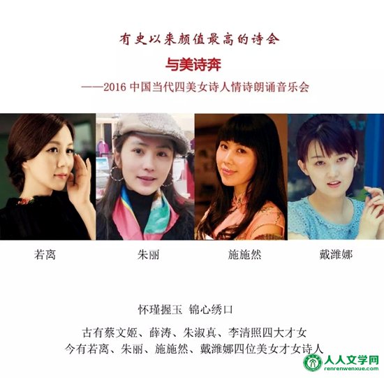 人人文学网讯 “三八”前夕,中国当代四美女诗人情诗朗诵音乐会正式宣布启动。中国诗歌春晚组委会、广东省朗诵协会联袂在“五一”前夕深圳隆重上演一台集诗歌、舞蹈、音乐、芭蕾、钢琴等艺术形式与一体的高雅艺术盛宴,以诗歌彰显当代女性美丽与尊严。