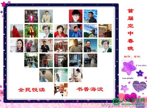 人人文学网(北京讯)2016年3月6日晚8:00-10:00点,由全民悦读北京海淀中关村阅读会主办、北京芳满园文化有限公司承办、全民悦读联盟、中国文化义工北京书画团、北京诗社、海淀区作家协会协办、中国文化义工公益网、人人文学网支持的'全民悦读、书香海淀'2016首届空中诗歌春晚成功举办。全民悦读联盟秘书长杨宸致辞后,来自不同行业的20位诗人、作家、朗诵家及朗读、音乐爱好者展示了诗歌、朗诵和演唱的才艺,近500名微友参加了观摩与互动。
