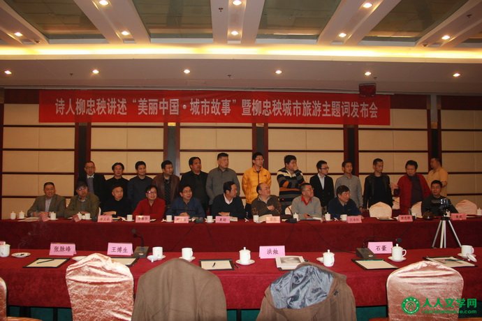 人人文学网讯(摄影王博生、刘井彬):3月13日,[美丽中国城市故事]暨柳忠秧城市旅游暨文化主题词硏讨会]在北京隆重举行。解放军报原副总编辑江永红少将,人民日报社新闻研究部副主任夏珺,学者、中国人民大学党委委员、校长助理郑水泉,全国网联“美丽中国--千城联播”平台常务副秘书长余开鲜、诗人洪烛,诗人李肇华,诗人、人人文学网总编辑王博生,清华大学李义余老师,诗词之友总编辑张脉峰,出版人刘井彬,北京大学青年学者陈灏庐,诗人杨罡,《瞭望》杂志社张友长,人民文艺网石豪,腾讯网吕诗均,文化策划专家刘克勤以及文史界、新闻界等各界朋友四十余人出席。国务院参事室副主任陈廷佑,人民日报文艺部原主任龚达发,诗人叶延滨、唐晓渡、刘佑生、祁人、北塔、冰峰、周瑟瑟、赵福治,学者樊星、余三定、陈定家、李遇春、柳春蕊、吴虹等来电来信致贺。