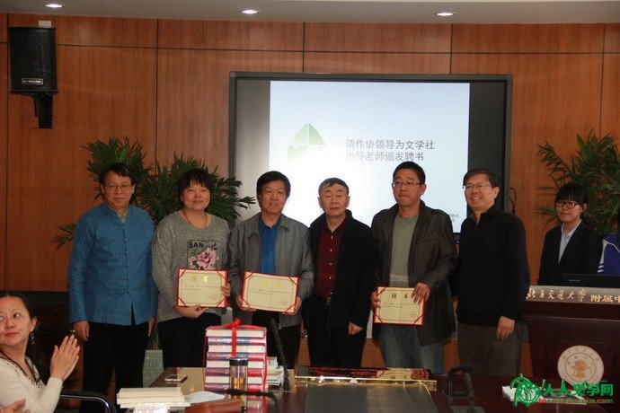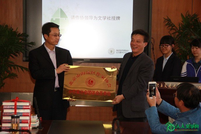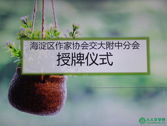 海淀作家协会北方交通大学附中基地授牌仪式举办 人人文学网讯:4月7日下午,“海淀作家协会北方交通大学附中基地”授牌仪式,在北京市海淀区北方交通大学附中(以下简称“交大附中”)隆重举行。 海淀区文联副主席叶宏奇,海淀区作家协会(以下简称“海淀作协”)秘书长王威,人人文学网总编王博生,《东方少年》杂志社副社长杨玉祥,《诗歌网》执行总监祝滢,著名诗人王久辛、,著名作家张庆和受邀参会。交大附中党委书记马志太,教学主任林玉,团委书记吴琳,学科老师及学生代表,出席参加了此次活动。 该活动是海淀作协积极贯彻习近平总书记在文艺座谈会上的讲话精神,树立深入生活、文学从娃娃抓起的理念,走进中小学校,对学生进行文学指导,为他们实现文学梦做一些实实在在的事,配合学校素质教育尽一份力的具体践行。 启动仪式上,海淀区文联副主席叶宏奇,海淀作协秘书长王威分别致辞,授予北方交大附中“海淀区小作家协会北方交大附中基地”的牌匾。著名诗人王久新,及著名作家张庆和等人,向北方交大附中赠书并发表感言。王久辛老师的“创作是灵魂的抒写”赢得了同学们的共鸣;《东方少年》杂志社副社长杨玉祥即兴发言,引起在场师生的热烈鼓掌。各位嘉宾依次进行了精彩的发言。交大附中党委书记马志太在会致辞,热情地欢迎各位到场的嘉宾,并介绍了学校的相关情况,表示要把小作协活动和学校的育人计划结合起来,全方位提高学生的素质。学生们也表达了自己的愉悦的感受,并且在会上表演了诗歌朗诵的节目。 此次活动,将会丰富教学内容,使校内语文课程的内涵予以延伸,让学生体验由文学赋予的文化生活,给热爱文学的学生们搭建发展的平台。届时,该校的文学社将成为海淀作协的团体会员,并启动以文学为核心的各类活动。为配合这些活动,海淀作协北方交大附中基地将会有针对性地开展丰富多彩的文学活动。(摄影:王博生、撰文:叶冰) ![]() ![]() ![]()