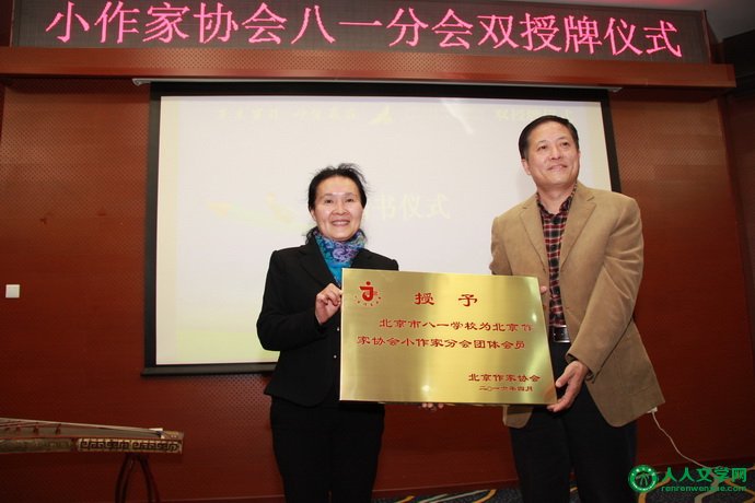 人人文学网讯:4月12日下午,“北京市小作家协会八一学校分会;海淀区小作家协会八一学校分会”双授牌仪式在八一学校隆重举行。这也是海淀区第一所同时被市、区两级作协授牌的学校。